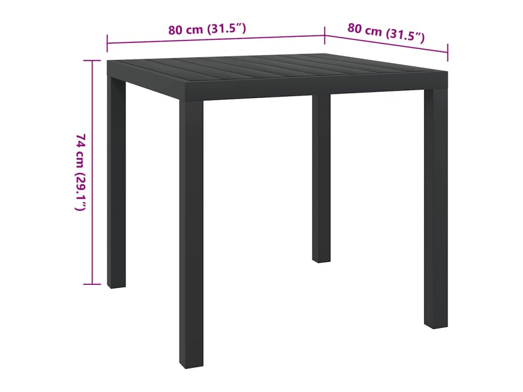 Zahradní stůl černý 80 x 80 x 74 cm hliník a WPC 42790
