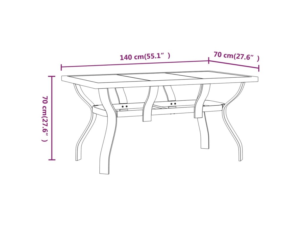 Zahradní stůl hnědočerný 140 x 70 x 70 cm ocel a sklo 318772