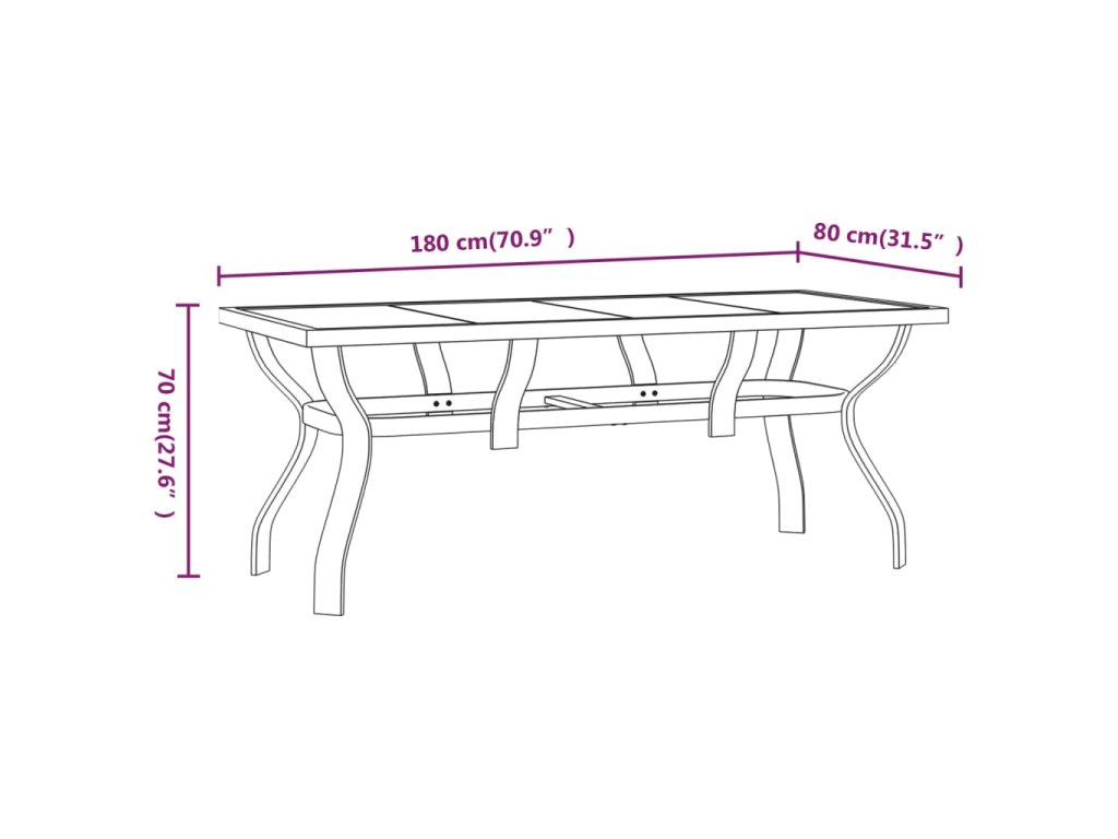 Zahradní stůl hnědočerný 180 x 80 x 70 cm ocel a sklo 318773