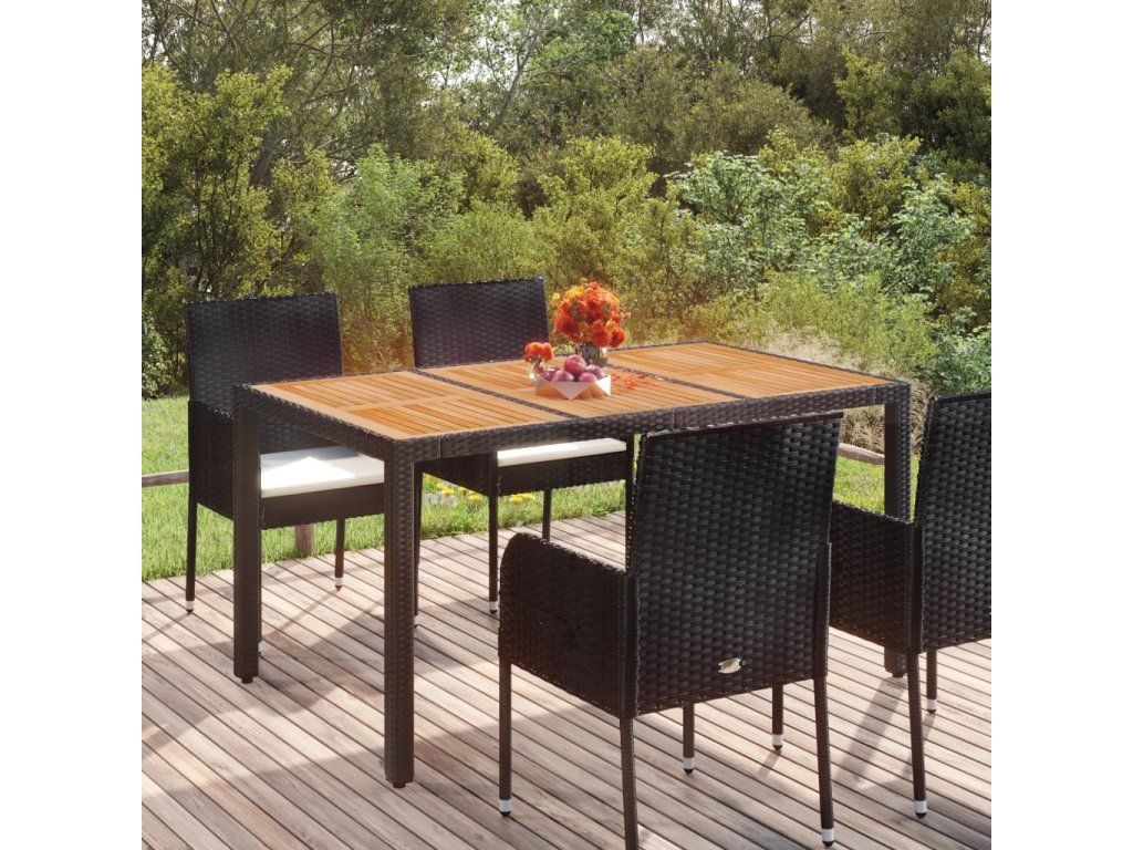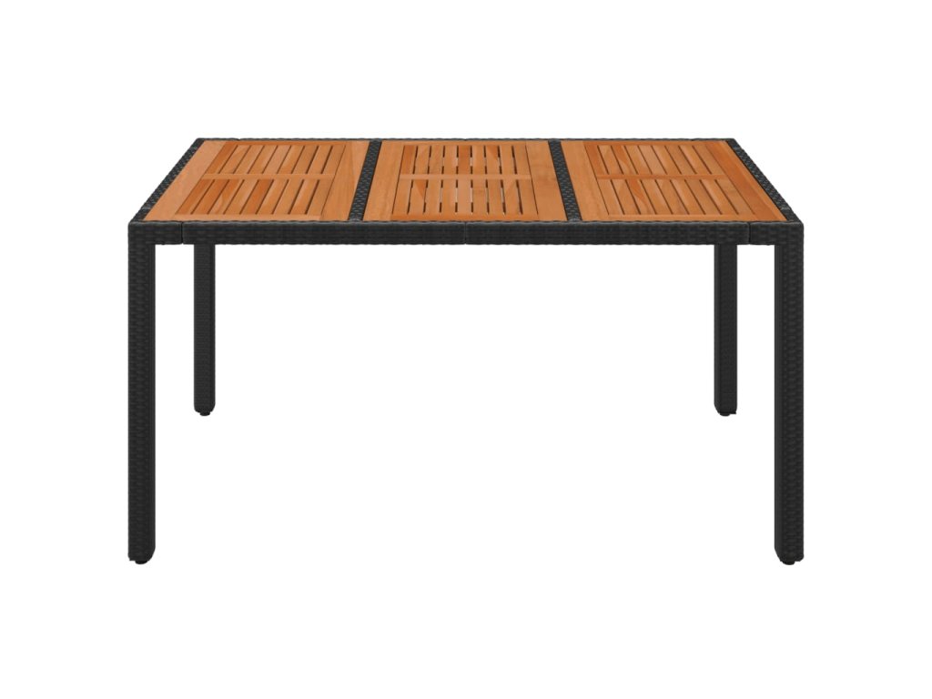 Zahradní stůl s dřevěnou deskou černý 150x90x75 cm polyratan 319901