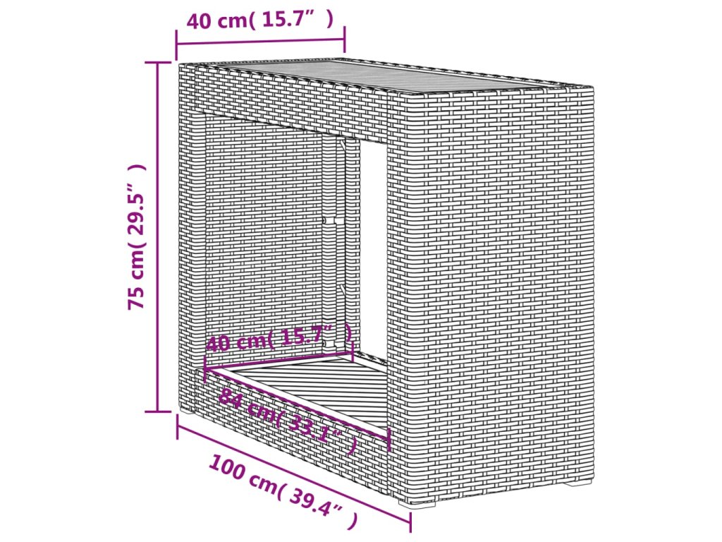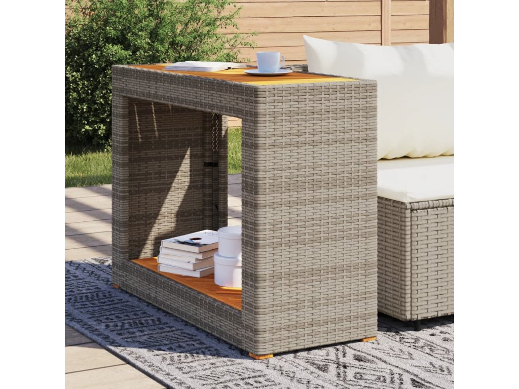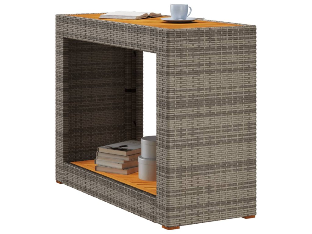 Zahradní stůl s dřevěnou deskou šedý 100 x 40 x 75 cm polyratan 366307