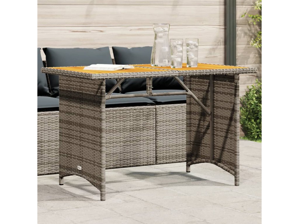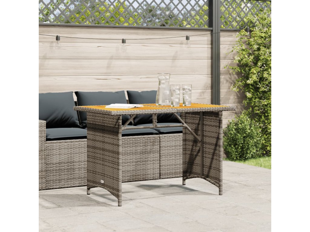Zahradní stůl s dřevěnou deskou šedý 110 x 68 x 70 cm polyratan 366356