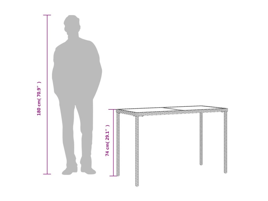 - Skleněná deska stolu: Deska venkovního stolu je zhotovena ze silného a odolného tvrzeného skla, takže ji snadno očistíte vlhkým hadříkem a zároveň do vašeho venkovního prostoru vnese nádech elegance.