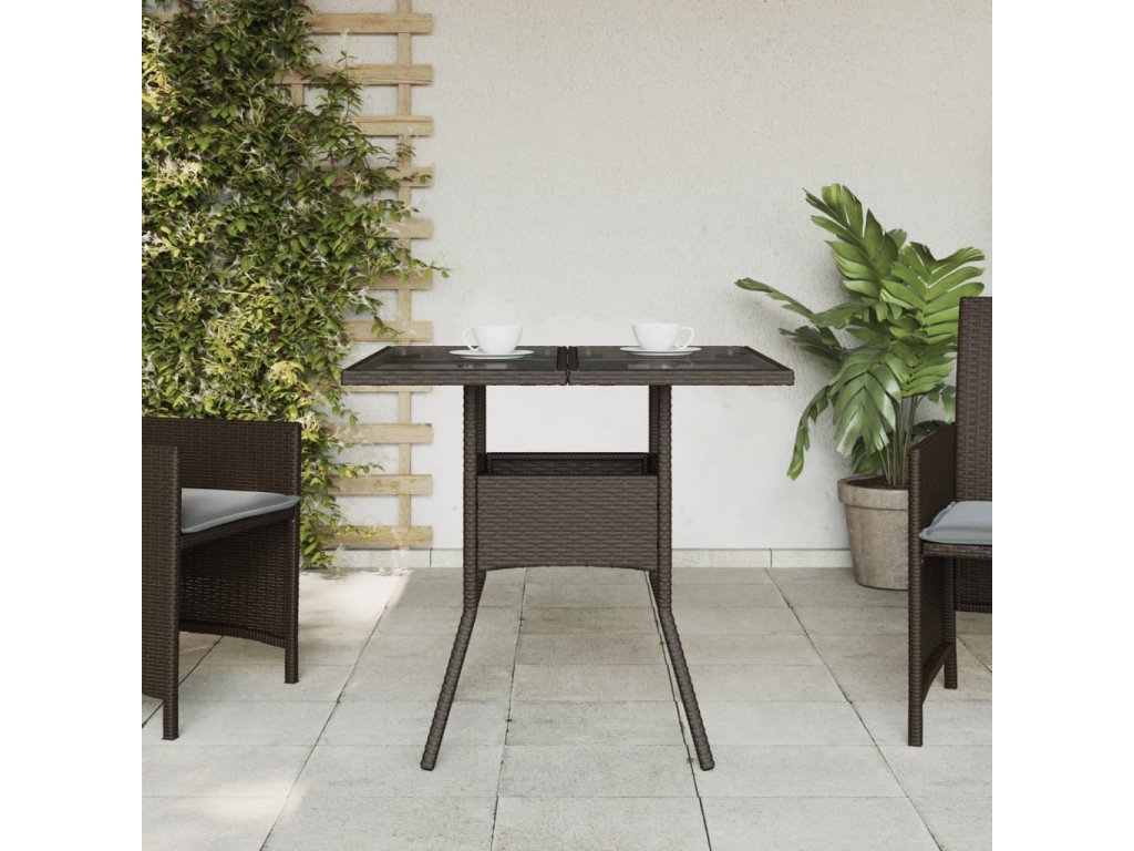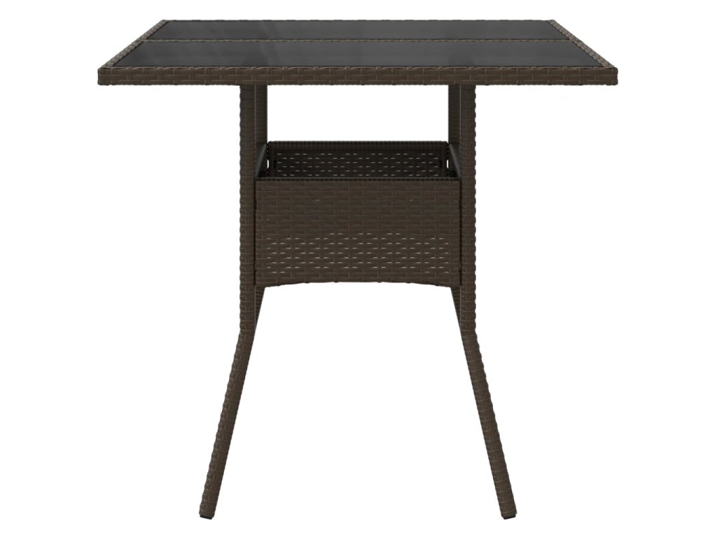 Zahradní stůl se skleněnou deskou hnědý 80x80x75 cm polyratan 365524