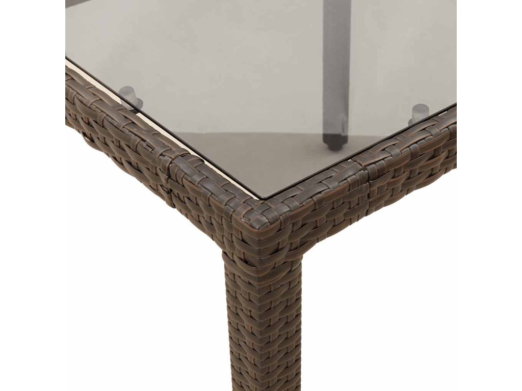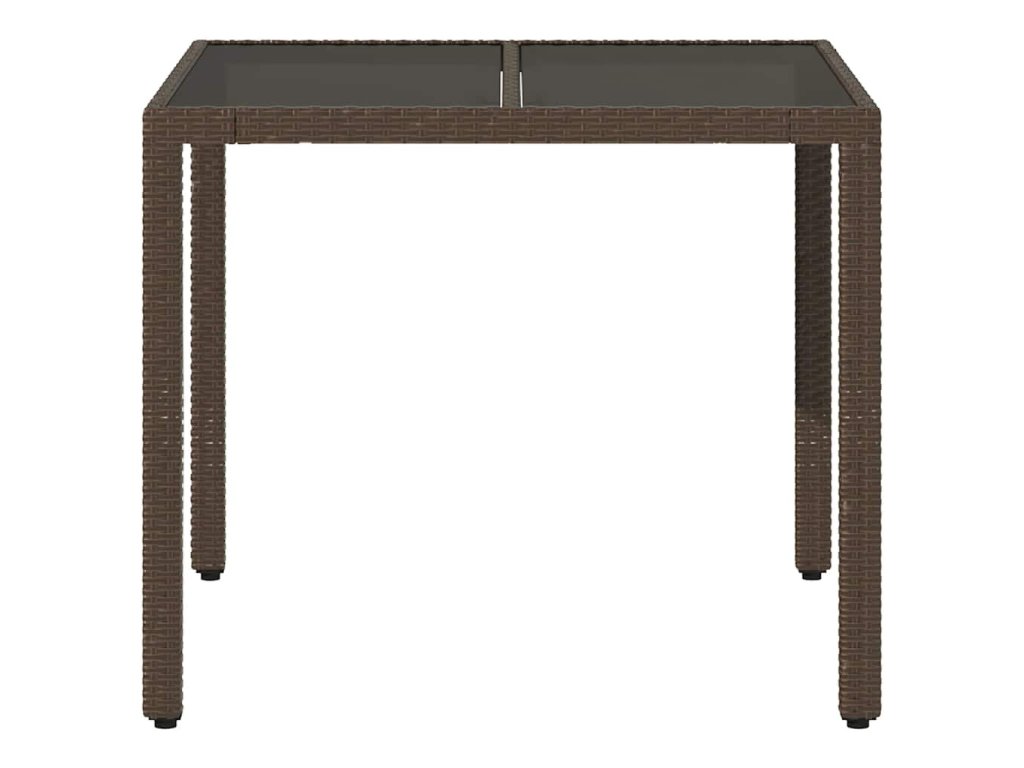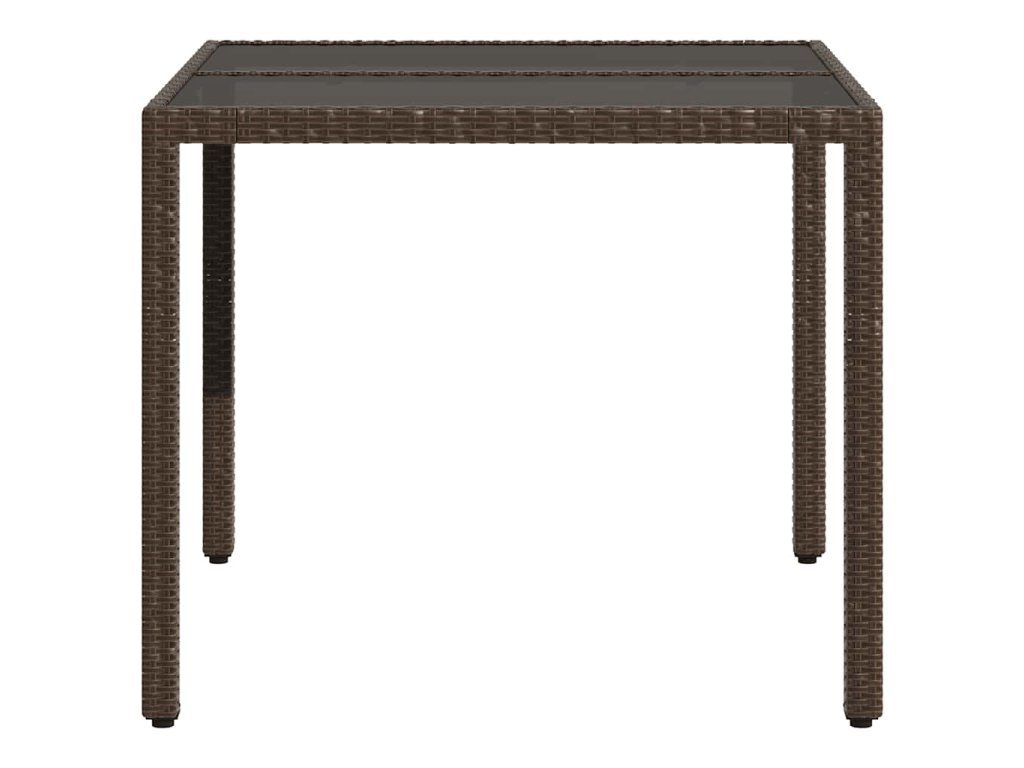 Zahradní stůl se skleněnou deskou hnědý 90x90x75 cm polyratan 365528