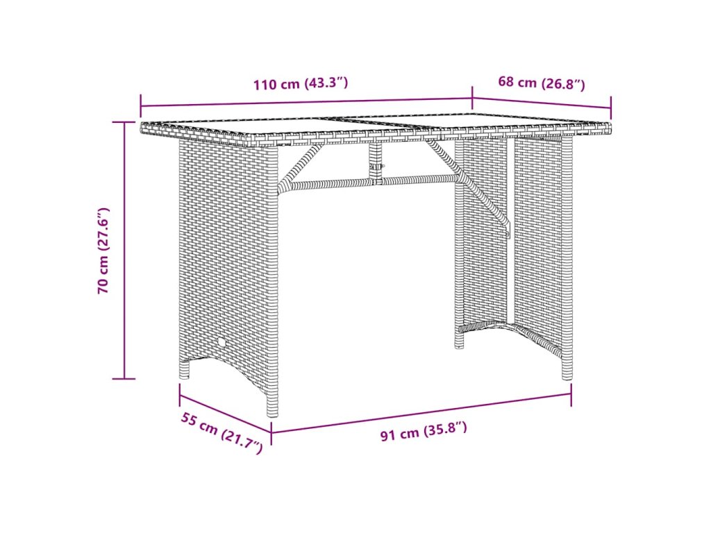 - Skleněná deska stolu: Deska venkovního stolu je zhotovena ze silného a odolného tvrzeného skla, takže ji snadno očistíte vlhkým hadříkem a zároveň do vašeho venkovního prostoru vnese nádech elegance.