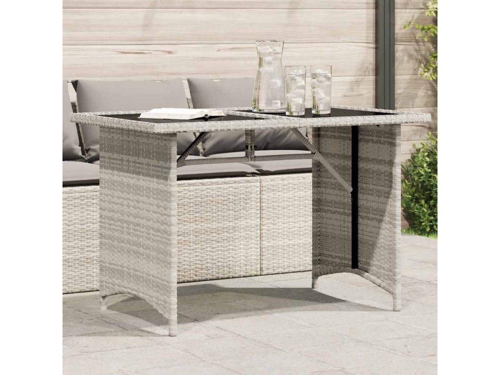 Zahradní stůl skleněná deska světle šedý 110x68x70 cm polyratan 366354