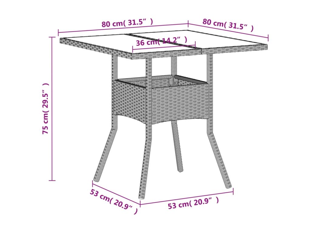 - Skleněná deska stolu: Deska venkovního stolu je zhotovena ze silného a odolného tvrzeného skla, takže ji snadno očistíte vlhkým hadříkem a zároveň do vašeho venkovního prostoru vnese nádech elegance.