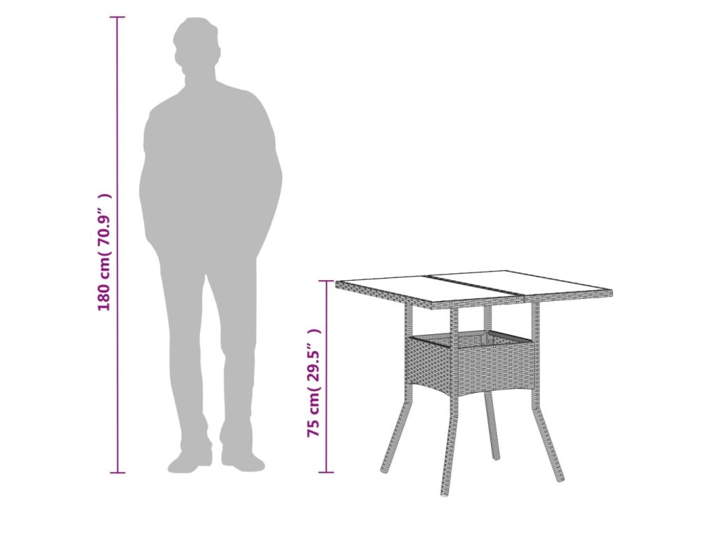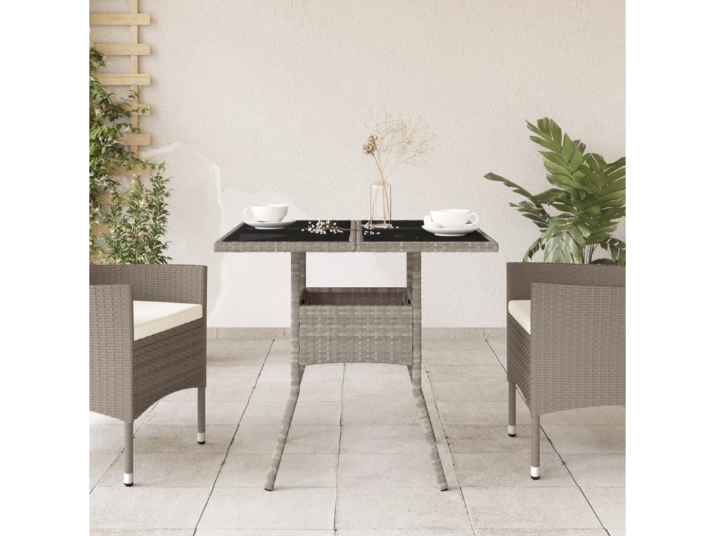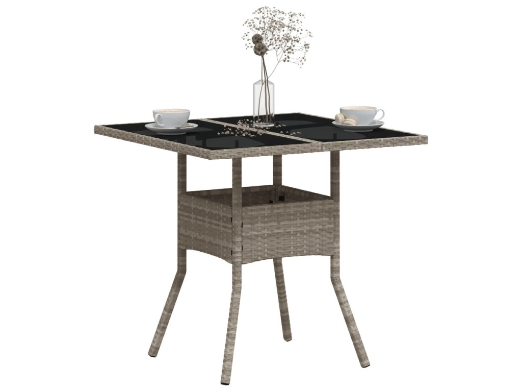 Zahradní stůl skleněná deska světle šedý 80x80x75 cm polyratan 368131