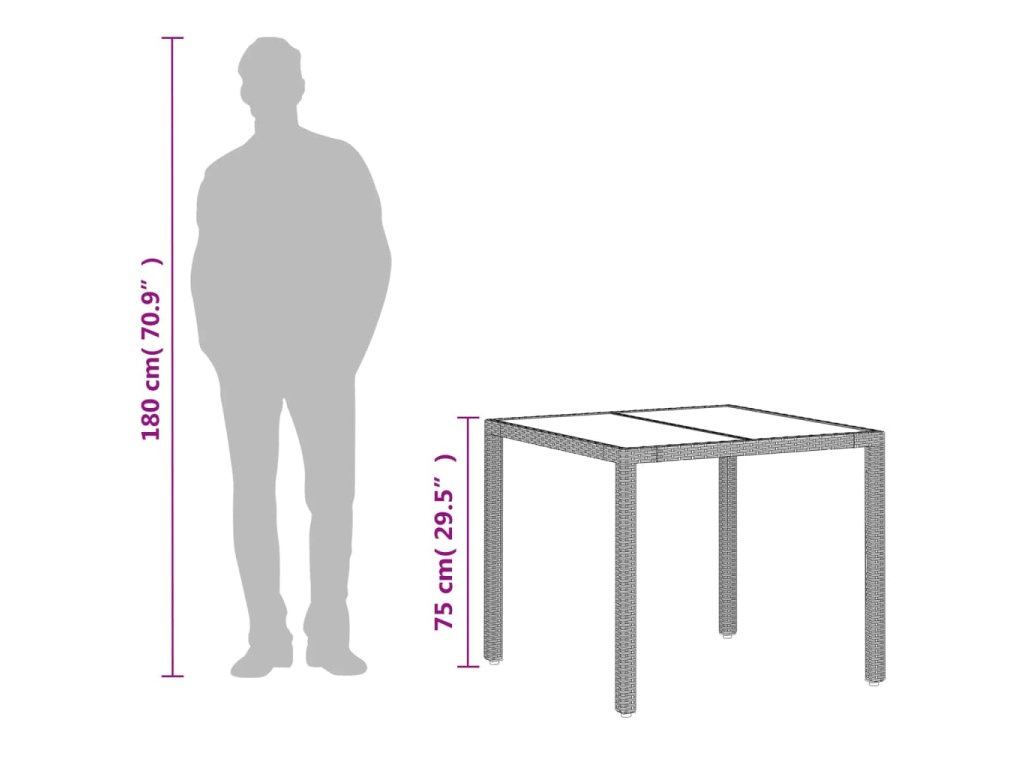 - Skleněná deska stolu: Deska venkovního stolu je zhotovena ze silného a odolného tvrzeného skla, takže ji snadno očistíte vlhkým hadříkem a zároveň do vašeho venkovního prostoru vnese nádech elegance.