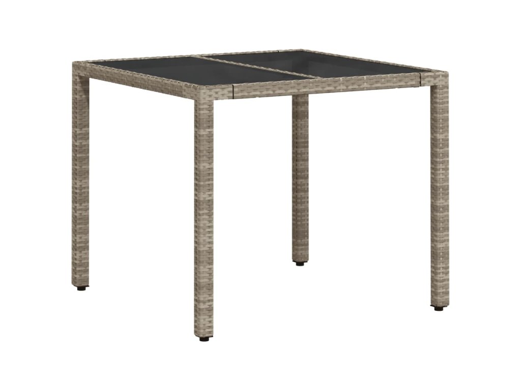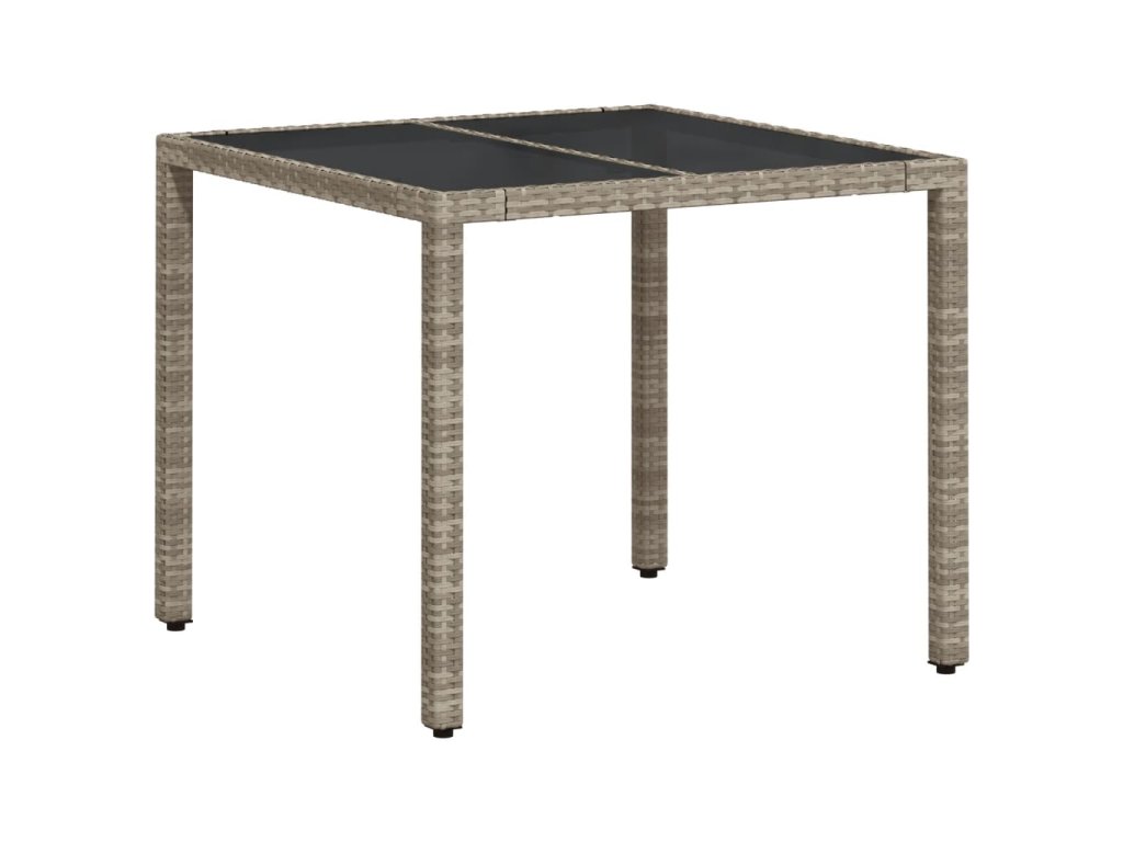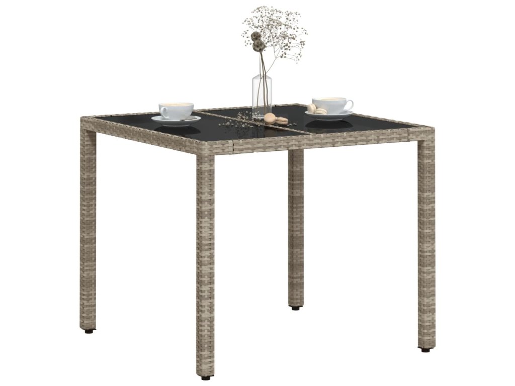 Zahradní stůl skleněná deska světle šedý 90x90x75 cm polyratan 368122