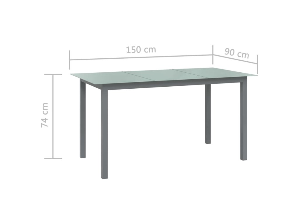 Zahradní stůl světle šedý 150 x 90 x 74 cm hliník a sklo 312204