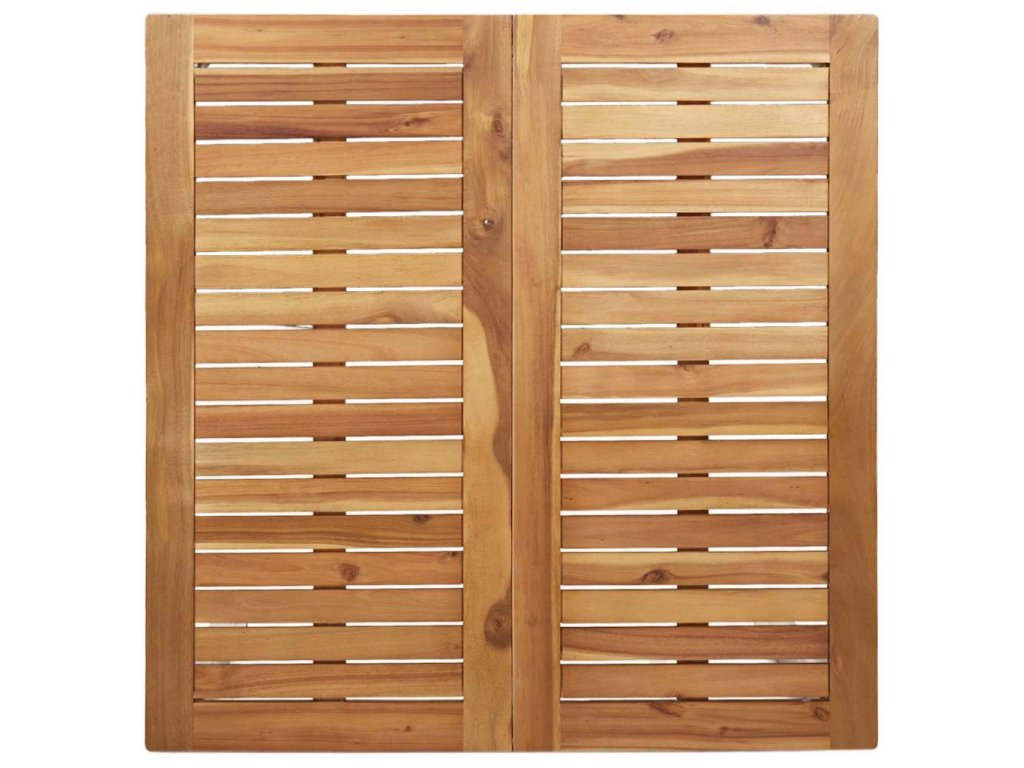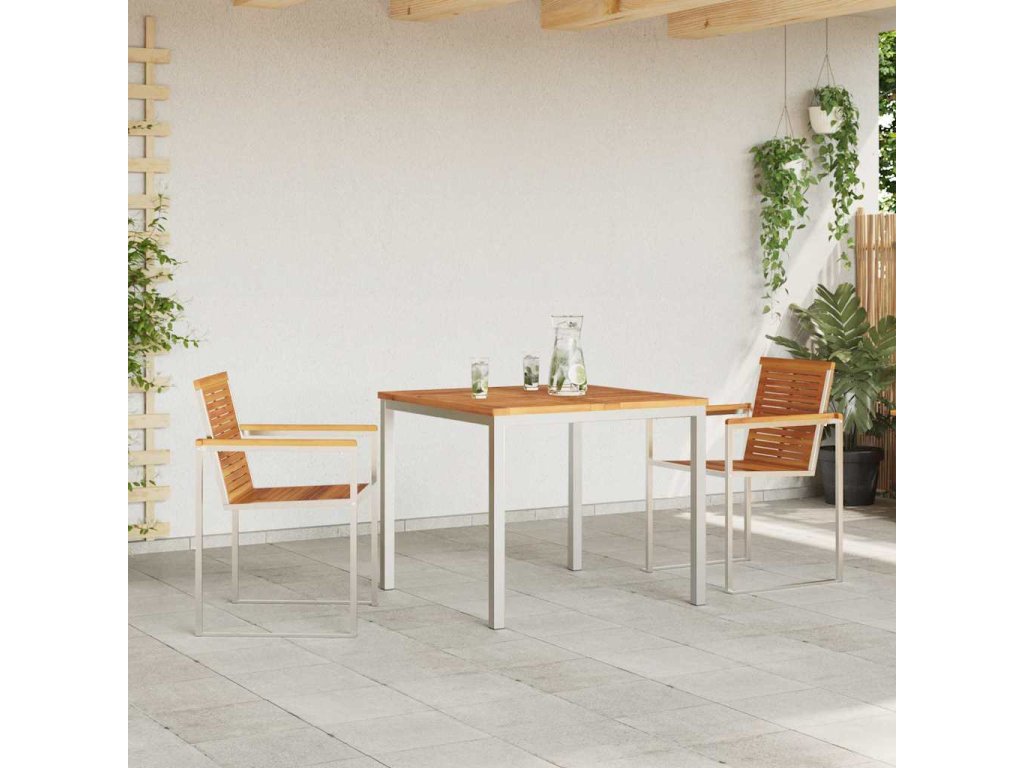 Pevný rám: Silný ocelový rám zajišťuje stabilitu, abyste si mohli v klidu vychutnávat jídlo. Je odolný vůči venkovním podmínkám, což ho činí skvělou volbou pro časté venkovní posezení. Elegantní dřevěný povrch: Dřevěná deska stolu dodává přírodní vzhled a skvěle ladí s ocelovým rámem. Je navržena tak, aby měla dobrý odtok, což usnadňuje údržbu a skvěle vypadá na vašem venkovním prostoru. Odolný design: Tento set je vytvářen pro venkovní použití, zvládne jakékoli počasí. Můžete mít klid, že bude silný a vypadat skvěle, ať prší, nebo svítí slunce, díky svému chytrému designu. Moderní funkční styl: Svým moderním vzhledem a jednoduchými detaily se tento set snadno hodí do současných venkovních prostor, kombinuje funkčnost a styl bez námahy. Jednoduché pokyny pro údržbu: Aby byl v perfektním stavu, zakryjte ho, když ho nepoužíváte, a otřete vlhkým hadříkem. Tyto jednoduché tipy na údržbu zajistí, že váš jídelní set zůstane v dobrém stavu dlouho!- Materiál: Masivní akáciové dřevo