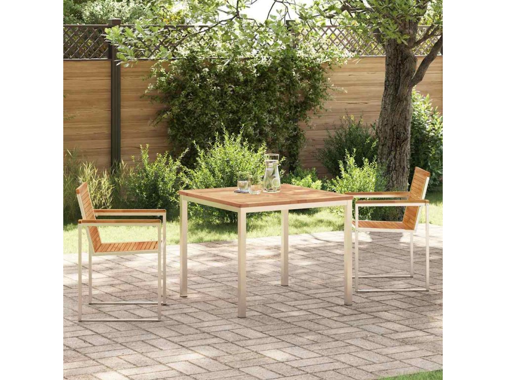 - Elegantní dřevěný povrch: Dřevěná deska stolu dodává přírodní vzhled a skvěle ladí s ocelovým rámem. Je navržena tak, aby měla dobrý odtok, což usnadňuje údržbu a skvěle vypadá na vašem venkovním prostoru.