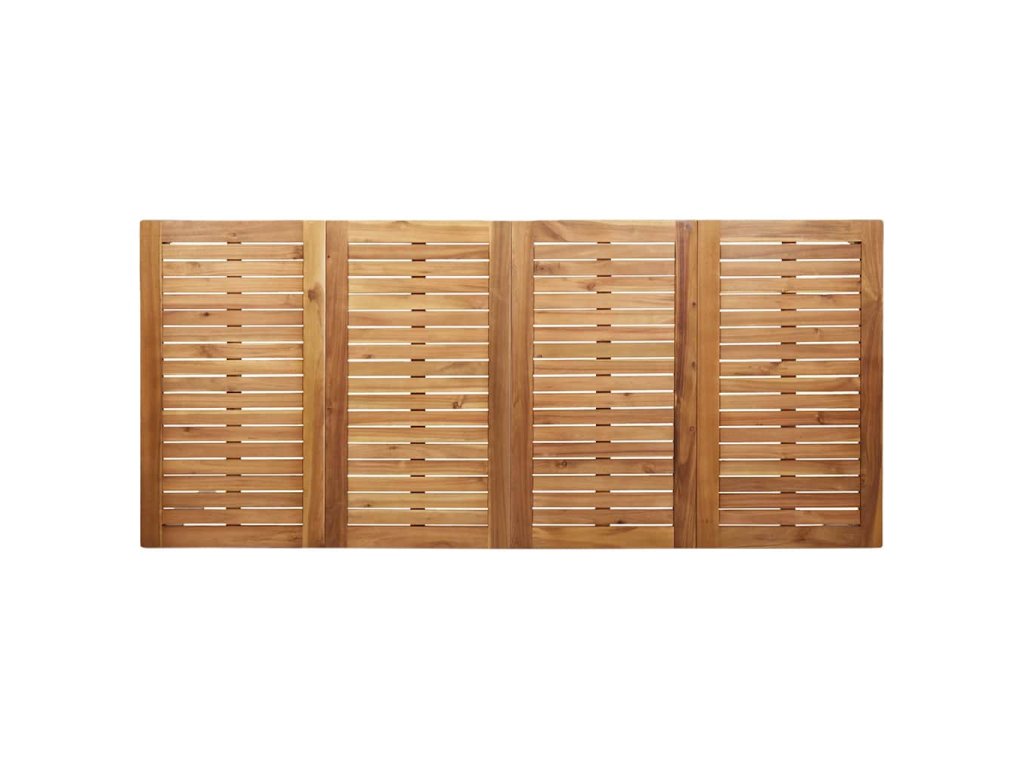 Pevný rám: Silný ocelový rám zajišťuje stabilitu, abyste si mohli v klidu vychutnávat jídlo. Je odolný vůči venkovním podmínkám, což ho činí skvělou volbou pro časté venkovní posezení. Elegantní dřevěný povrch: Dřevěná deska stolu dodává přírodní vzhled a skvěle ladí s ocelovým rámem. Je navržena tak, aby měla dobrý odtok, což usnadňuje údržbu a skvěle vypadá na vašem venkovním prostoru. Odolný design: Tento set je vytvářen pro venkovní použití, zvládne jakékoli počasí. Můžete mít klid, že bude silný a vypadat skvěle, ať prší, nebo svítí slunce, díky svému chytrému designu. Moderní funkční styl: Svým moderním vzhledem a jednoduchými detaily se tento set snadno hodí do současných venkovních prostor, kombinuje funkčnost a styl bez námahy. Jednoduché pokyny pro údržbu: Aby byl v perfektním stavu, zakryjte ho, když ho nepoužíváte, a otřete vlhkým hadříkem. Tyto jednoduché tipy na údržbu zajistí, že váš jídelní set zůstane v dobrém stavu dlouho!- Materiál: Masivní akáciové dřevo