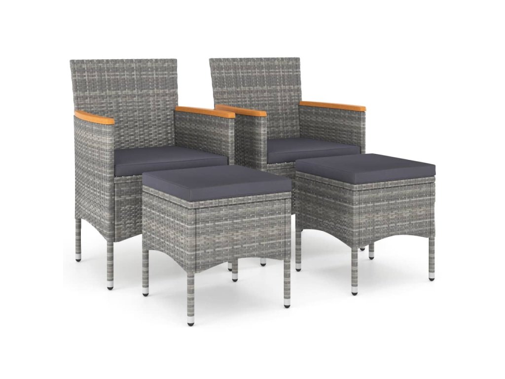4dílná zahradní souprava křesel a podnožek polyratan šedá 310615