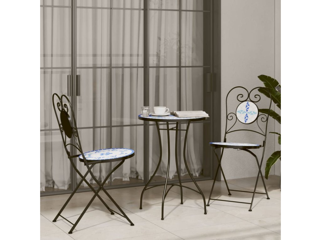 Bistro židle skládací 2 ks modré a bílé keramika 4003404