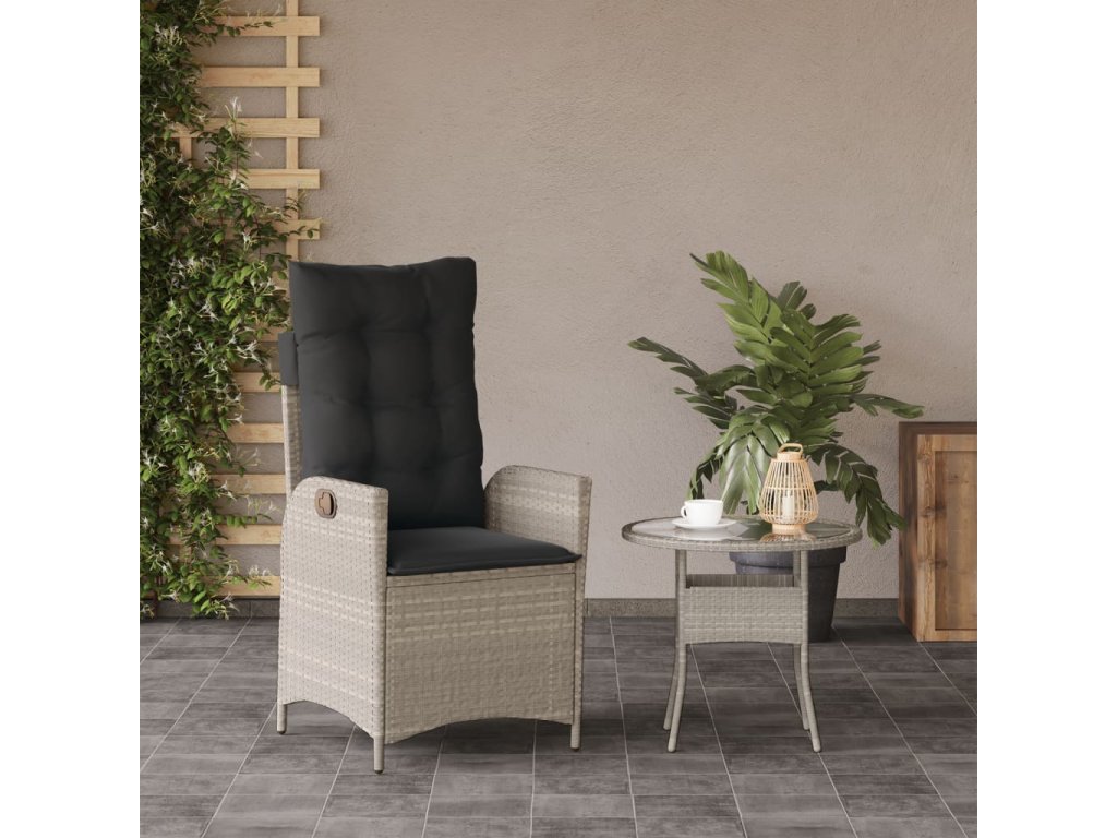 Polohovací zahradní křeslo s poduškami světle šedé polyratan 365262