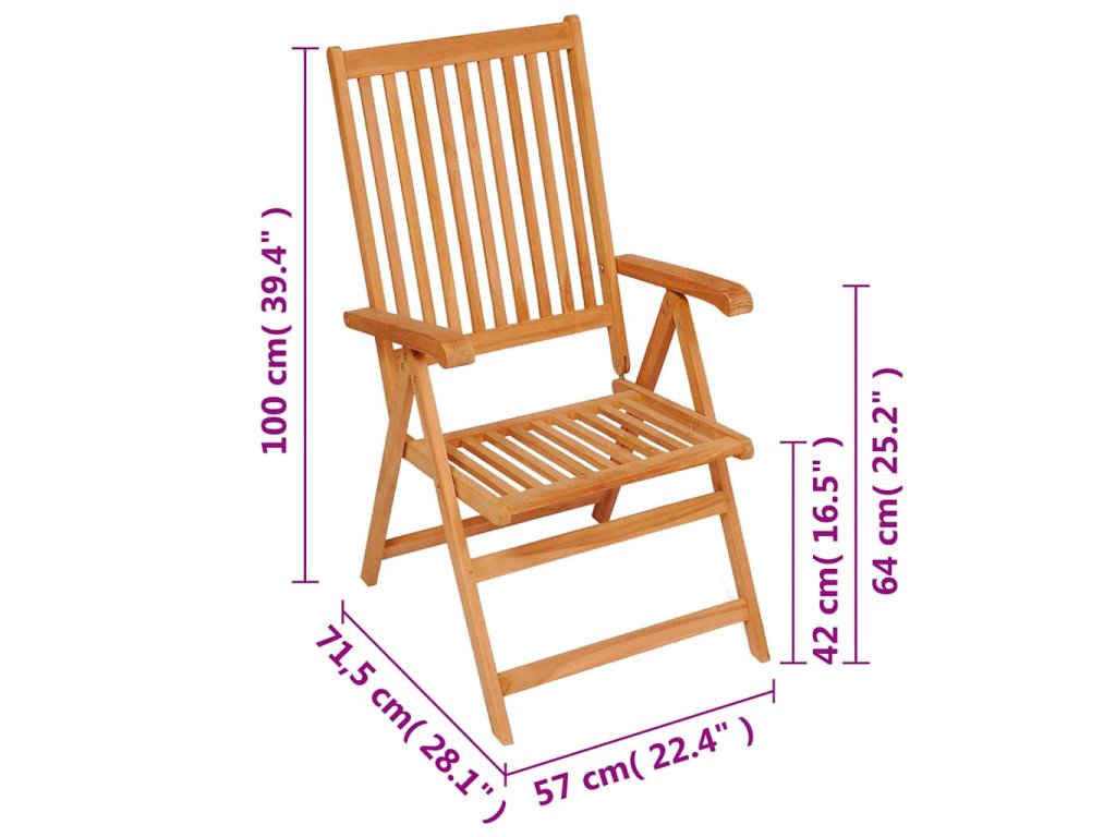 Skládací a polohovací dřevěná židle má klasický design. Nábytek je zhotovený z extrémně odolného teakového tvrdého dřeva, které již prošlo procesem smršťování, bylo uměle vysušené a poté jemně a dohladka obroušené. Teakové dřevo je oceňované pro svou výjimečnou pevnost a klimatickou odolnost, a proto je jedním z nejoblíbenějších materiálů pro výrobu zahradního nábytku. Je to skvělá volba, pokud si chcete pořídit venkovní výbavu, která vám vydrží sloužit dlouhá léta. Opěradlo židle lze naklonit do 7 různých poloh, takže si vždy najdete pozici, která vám bude zrovna nejpohodlnější. Zahradní židle je navíc lehká, můžete ji tudíž bez námahy přenášet. Pokud ji zrovna nepoužíváte, dá se jednoduše složit, aby vám zbytečně nezabírala místo.