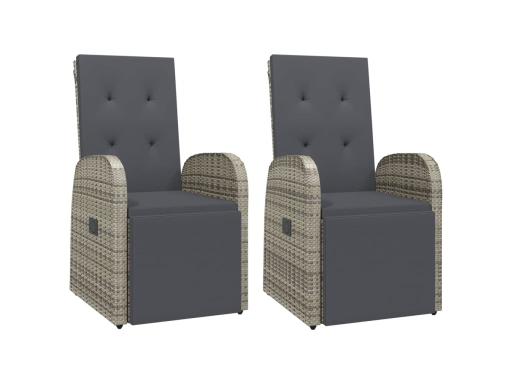 Polohovací zahradní židle s poduškami 2 ks šedé polyratan 319541