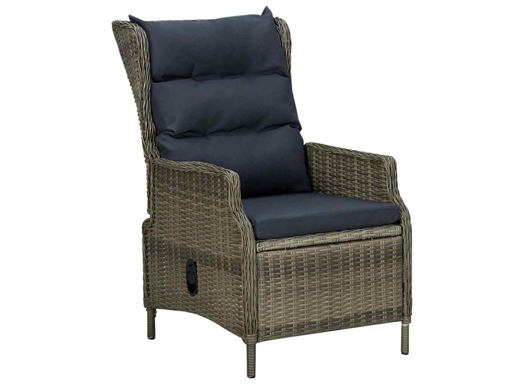 Zahradní židle má práškově lakovaný ocelový rám, který je potažený kulatým PE ratanem. Židle je robustní a snadno se čistí. Na silně polstrovaných poduškách se příjemně odpočívá. Potahy na poduškách mají zip, takže je můžete snadno sejmout a vyprat. Opěradlo lze nastavit pomocí mechanismu s plynovým pístem do polohy, která vám právě nejvíce vyhovuje. Stisknutím tlačítka na boku můžete opěradlo zcela sklopit do pohodlné polohy vleže. Konstrukce zahradní židle je navíc lehká, což usnadňuje její přenášení.