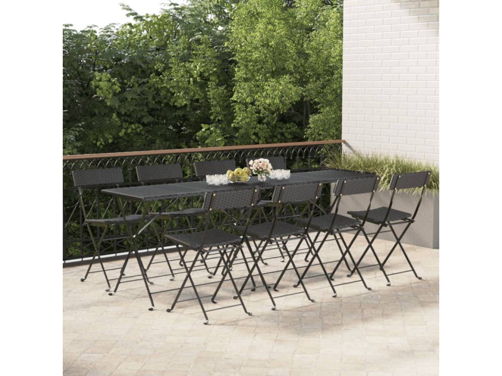Skládací bistro židle 8 ks černé polyratan a ocel 3152114