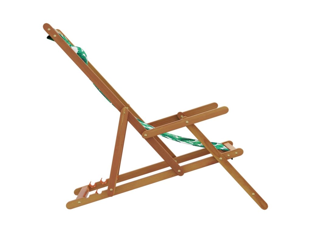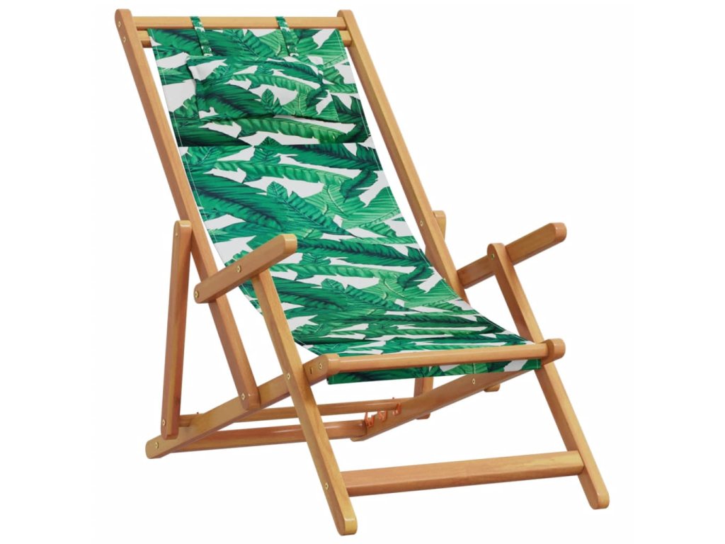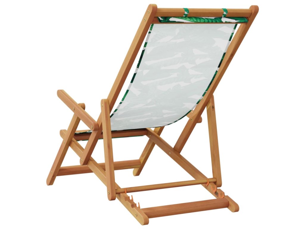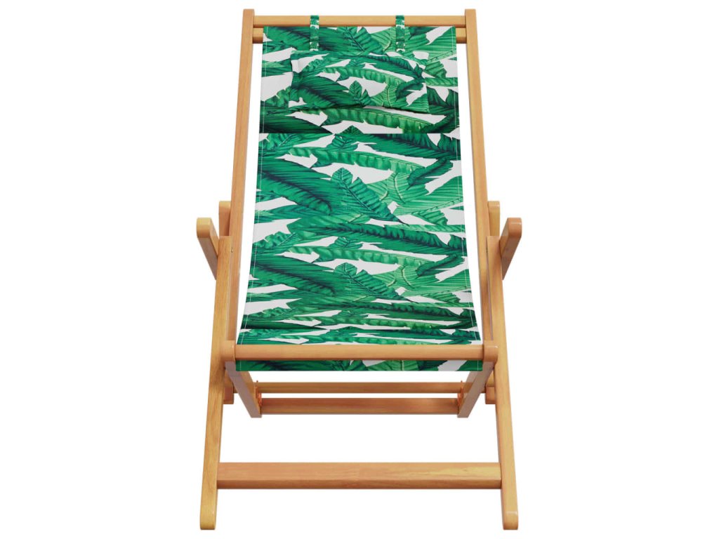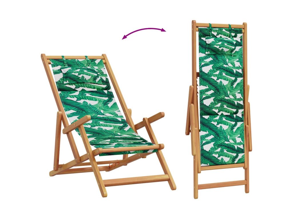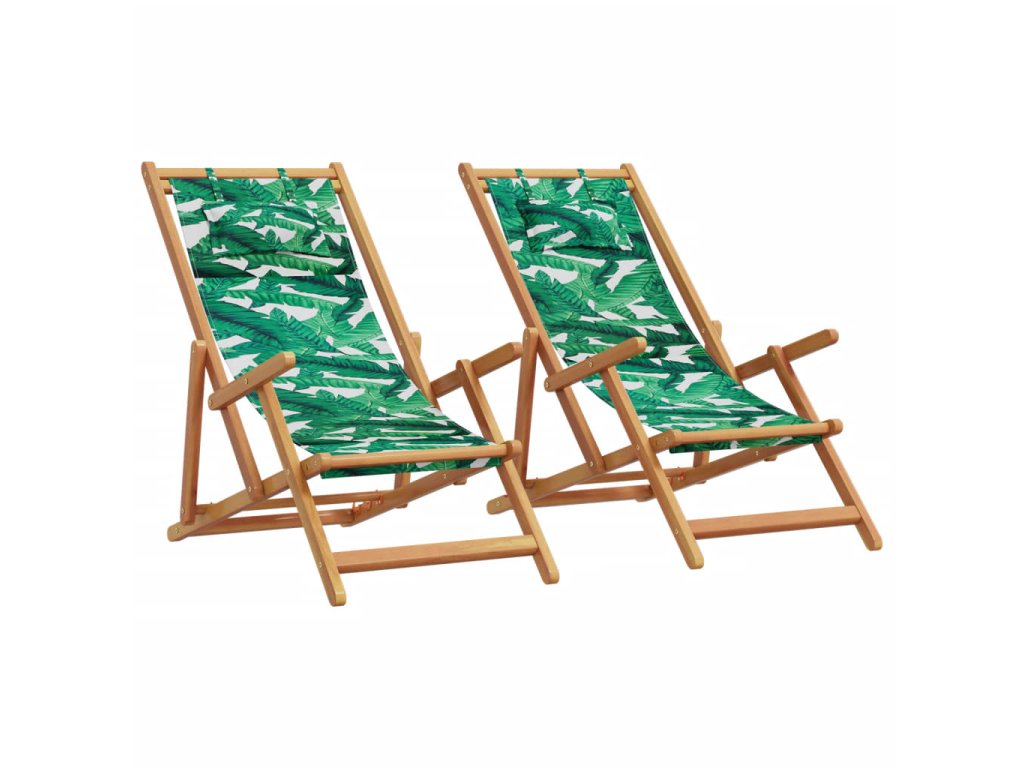 Skládací plážová křesla 2 ks vzor listů textil a masivní dřevo 3214489