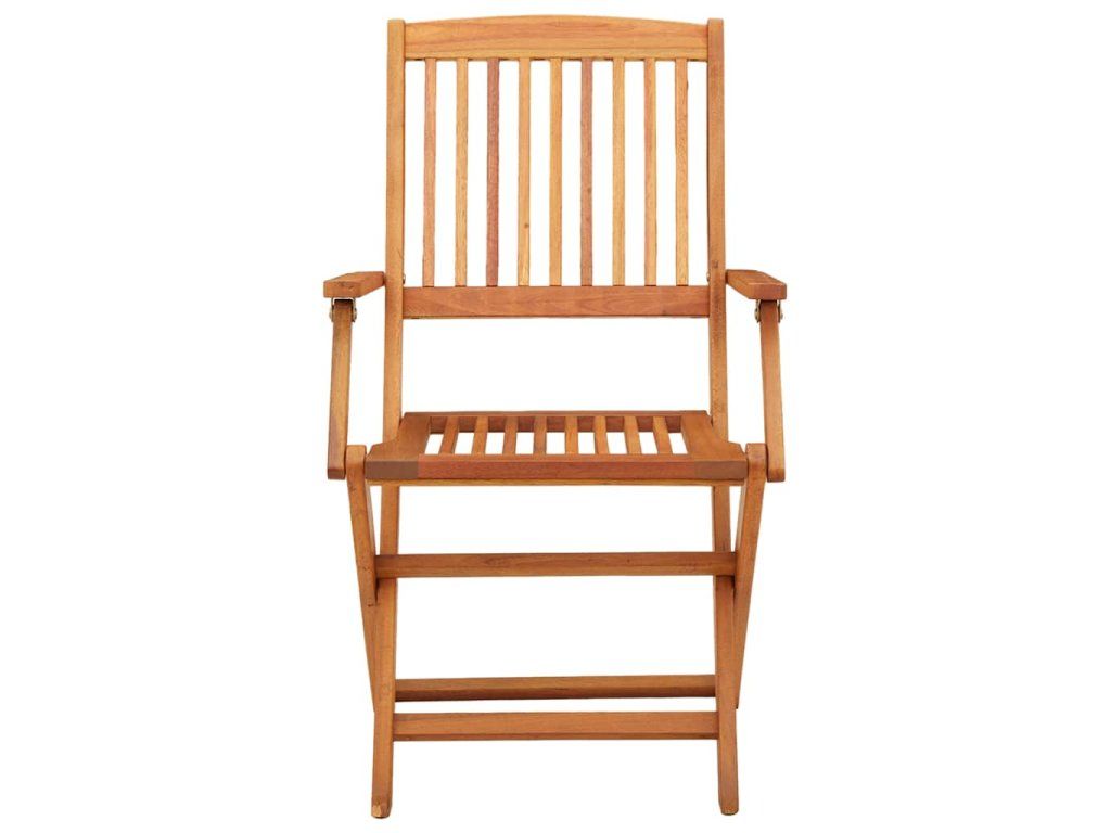 Jídelní židle jsou vyrobeny z eukalyptového dřeva, které je známé svou odolností vůči opotřebení a rozmarům počasí. Olejem ošetřený povrch snadno očistíte vlhkým hadříkem. Pokud židle právě nepoužíváte, můžete je složit, aby vám zbytečně nepřekážely.