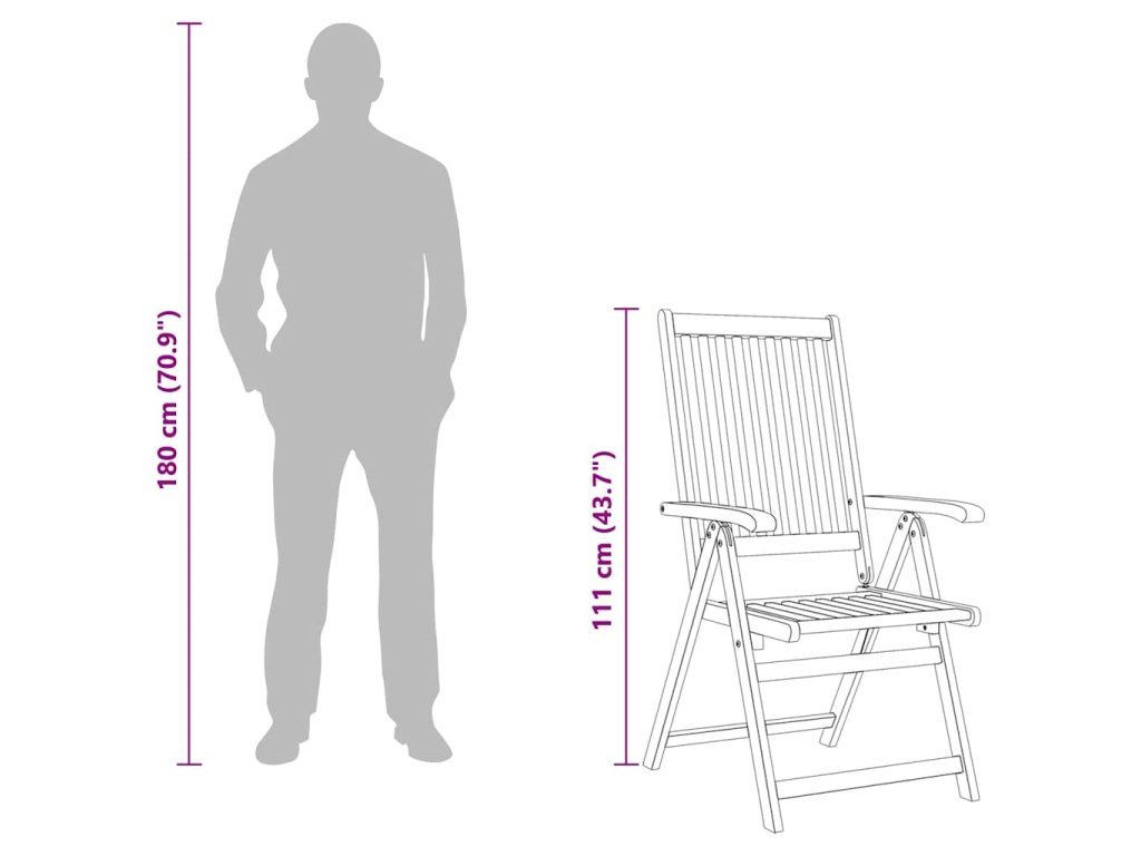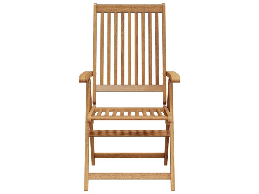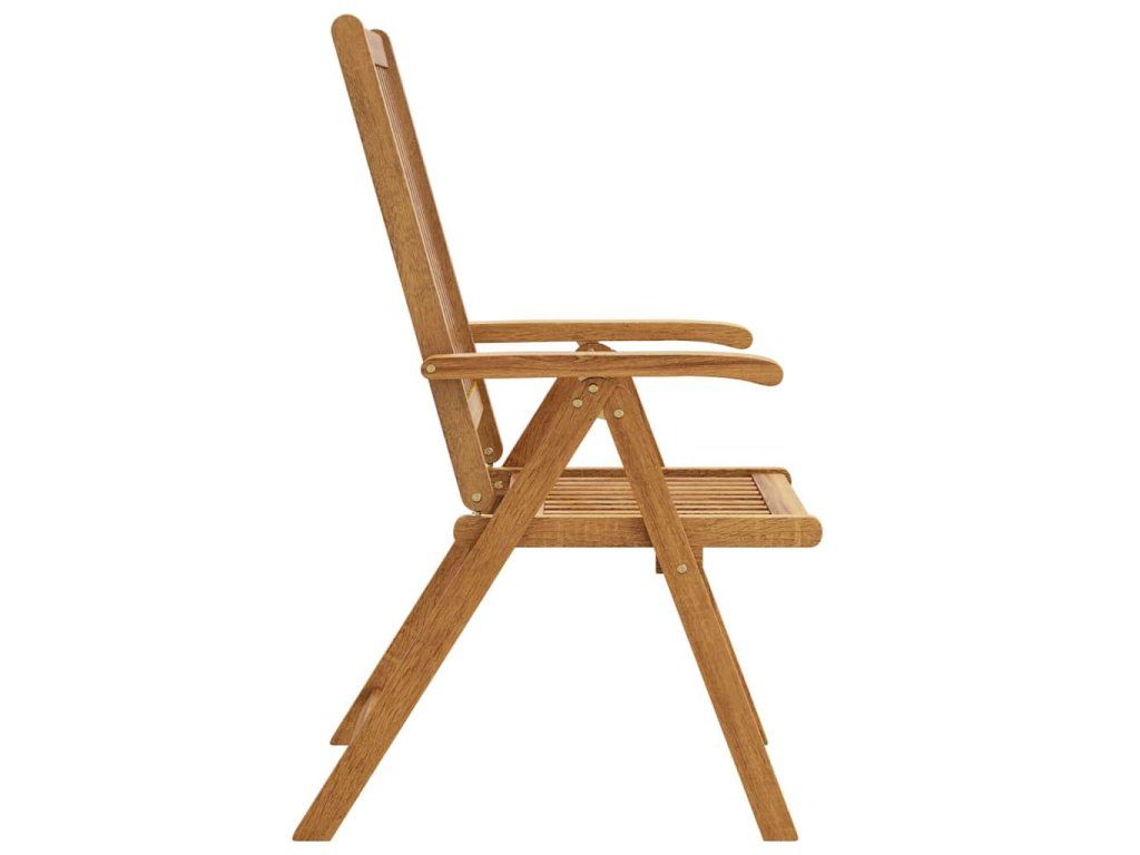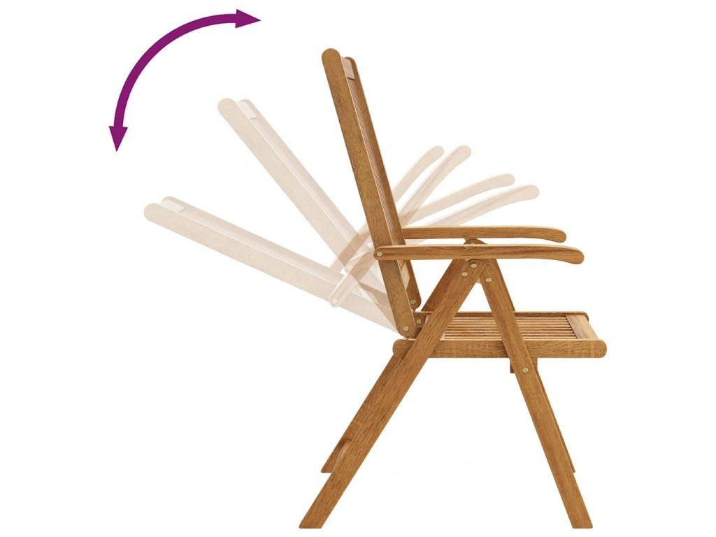 Skládací židle je vyrobená z masivní akácie, tropického tvrdého dřeva, takže je stabilní a odolná. Povrch je napuštěný olejem, a snadno se proto čistí vlhkým hadříkem. Jídelní židle se dá polohovat do 5 pozic, poskytne vám tedy při sezení optimální pohodlí. Když ji zrovna nepoužíváte, můžete židli složit, abyste ušetřili místo.
