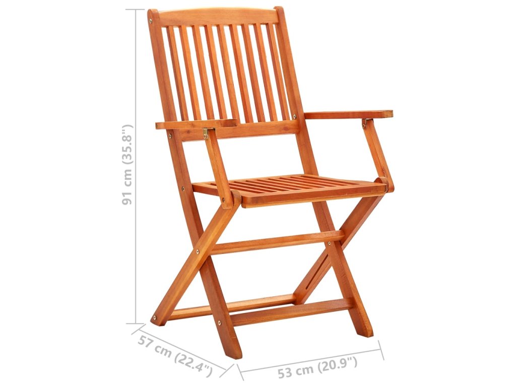 Jídelní židle jsou vyrobeny z eukalyptového dřeva, které je známé svou odolností vůči opotřebení a rozmarům počasí. Olejem ošetřený povrch snadno očistíte vlhkým hadříkem. Pokud židle právě nepoužíváte, můžete je složit, aby vám zbytečně nepřekážely.