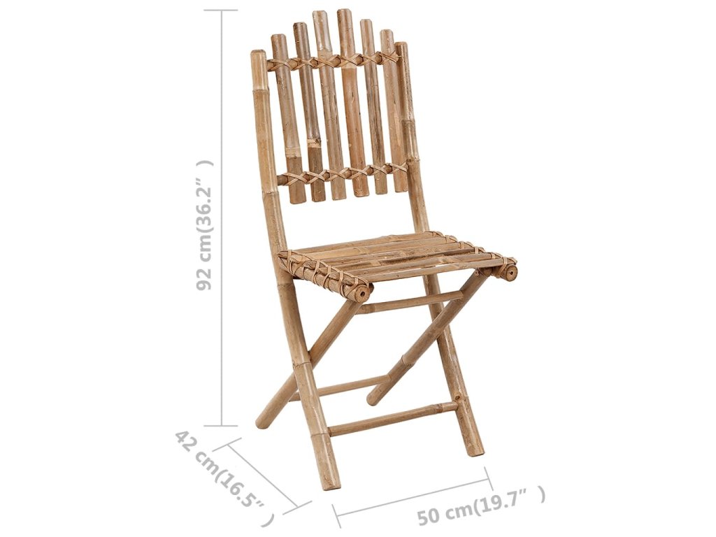 Zahradní židle je zhotovená z masivního bambusu, je tedy pevná a hodně toho vydrží. Skvěle také vzdoruje vodě a dalším klimatickým vlivům a k očištění vám postačí navlhčený hadřík. Jídelní židli lze složit, abyste ušetřili místo, když ji zrovna nepoužíváte. Přiložené podušky se vám při odpočinku postarají o maximální pohodlí. Jsou ušité ze 100% polyesteru, jsou tedy dostatečně silné a odolné, aby zvládly běžné venkovní používání. Každá z nich je opatřená dvěma páry šňůrek, kterými je můžete k židli pevně přichytit.