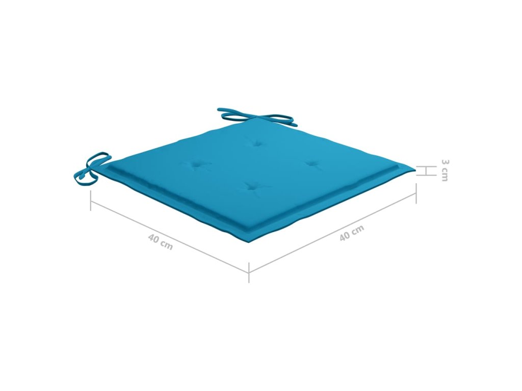 Nábytek je zhotovený z extrémně odolného teakového tvrdého dřeva, které již prošlo procesem smršťování, bylo uměle vysušené a poté jemně a dohladka obroušené. Teakové dřevo je oceňované pro svou výjimečnou pevnost a klimatickou odolnost, a proto je jedním z nejoblíbenějších materiálů pro výrobu zahradního nábytku. Jedná se o skvělou volbu, pokud si chcete pořídit venkovní výbavu, která vám bude sloužit dlouhá léta. Jídelní židle mají obroušený povrch, takže jsou odolné vůči povětrnostním podmínkám a snadno se čistí. Navíc je můžete složit, čímž ušetříte místo ve chvílích, kdy je zrovna nebudete používat. Podušky, které jsou součástí sady, nabízí mimořádné pohodlí. Každá poduška je opatřená 2 páry šňůrek, abyste mohli podušku pevně přivázat k židli.