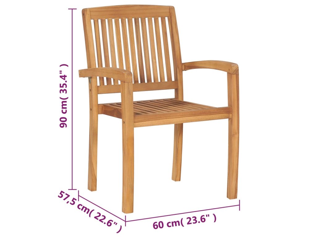 Nábytek je zhotovený z extrémně odolného teakového dřeva, které již prošlo procesem smršťování, bylo uměle vysušené a poté jemně a dohladka obroušené. Toto tvrdé dřevo je oceňované pro svou výjimečnou pevnost a klimatickou odolnost, a proto představuje zdaleka nejvhodnější materiál pro výrobu zahradního nábytku. Jedná se o skvělou volbu, pokud si chcete pořídit zahradní vybavení, které vám vydrží sloužit dlouhá léta. K údržbě a čištění vám postačí navlhčený hadřík. Jídelní židle lze navíc stohovat, když je zrovna nepoužíváte, aby vám zbytečně nezabíraly místo. O komfort se vám postarají přiložené podušky. Každá z nich je opatřená 2 páry šňůrek, za které ji k židli můžete pevně přivázat.
