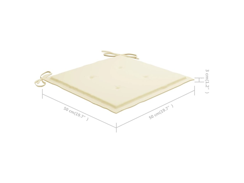 Nábytek je zhotovený z extrémně odolného teakového dřeva, které již prošlo procesem smršťování, bylo uměle vysušené a poté jemně a dohladka obroušené. Toto tvrdé dřevo je oceňované pro svou výjimečnou pevnost a klimatickou odolnost, a proto představuje zdaleka nejvhodnější materiál pro výrobu zahradního nábytku. Jedná se o skvělou volbu, pokud si chcete pořídit zahradní vybavení, které vám vydrží sloužit dlouhá léta. K údržbě a čištění vám postačí navlhčený hadřík. Jídelní židle lze navíc stohovat, když je zrovna nepoužíváte, aby vám zbytečně nezabíraly místo. O komfort se vám postarají přiložené podušky. Každá z nich je opatřená 2 páry šňůrek, za které ji k židli můžete pevně přivázat.