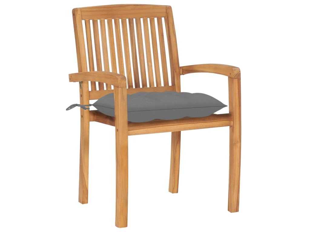 Nábytek je zhotovený z extrémně odolného teakového dřeva, které již prošlo procesem smršťování, bylo uměle vysušené a poté jemně a dohladka obroušené. Toto tvrdé dřevo je oceňované pro svou výjimečnou pevnost a klimatickou odolnost, a proto představuje zdaleka nejvhodnější materiál pro výrobu zahradního nábytku. Jedná se o skvělou volbu, pokud si chcete pořídit zahradní vybavení, které vám vydrží sloužit dlouhá léta. K údržbě a čištění vám postačí navlhčený hadřík. Jídelní židle lze navíc stohovat, když je zrovna nepoužíváte, aby vám zbytečně nezabíraly místo. O komfort se vám postarají přiložené podušky. Každá z nich je opatřená 2 páry šňůrek, za které ji k židli můžete pevně přivázat.