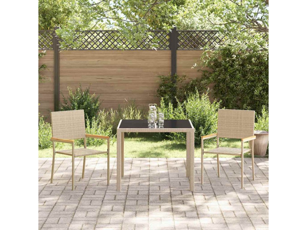 Materiál poly ratan: Sedadla obalená odolným poly ratanem vypadají moderně a vydrží venku. Bez problémů snesou slunce a vlhkost, takže si zachovají svůj vzhled dlouho. Ideální pro venkovní posezení, spojuje styl a funkčnost. Podrobnosti o komponentech: Souprava obsahuje stůl s tvrzenou skleněnou deskou a sedadla obalená poly ratanem. Ocelový rám zajišťuje stabilitu, takže máte pevný základ. Každý kousek je vybraný pro komfort a pevnost, což dělá z této soupravy skvělou volbu na venkovní akce. Moderní charakteristiky: S plochými opěrkami a jednoduchým designem nohou je to jak vizuálně příjemné, tak robustní. Tvrzená skleněná deska a texturovaný poly ratan dodávají moderní elegantní vzhled, který se hodí všude. Každý detail ukazuje praktický design, který je klíčový pro moderní nábytek. Různorodé venkovní použití: Ať už na zahradě, terase nebo u bazénu, tahle souprava se perfektně hodí. Její flexibilní styl je ideální jak na honosné večeře, tak na pohodlné lenošení nebo domácí párty - snadno se přizpůsobí vaší náladě. Údržba: Pro delší životnost ji zakryjte, když ji nepoužíváte. Snadno se čistí, takže vždy vypadá skvěle, a základní péče stačí. Perfektní volba pro ty, kteří chtějí minimalizovat údržbu, ale užívat si maximální pohodu.- Barva: Béžová