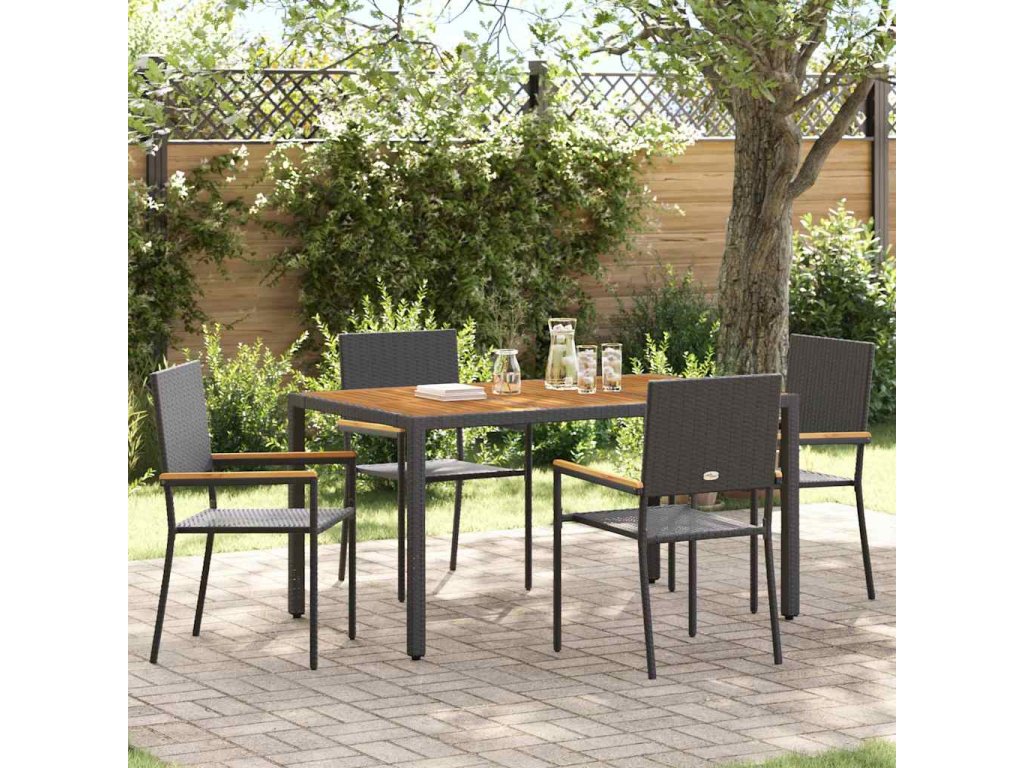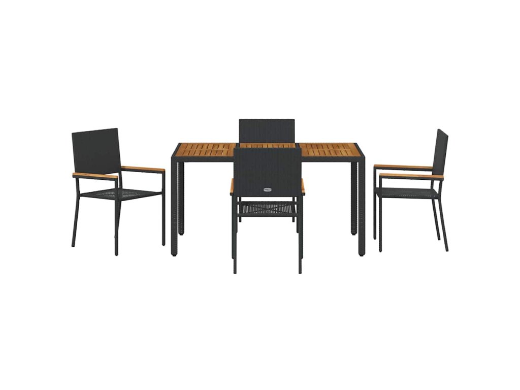 Zahradní jídelní souprava 5 pcs Černá a dřevo polyratan 3365406