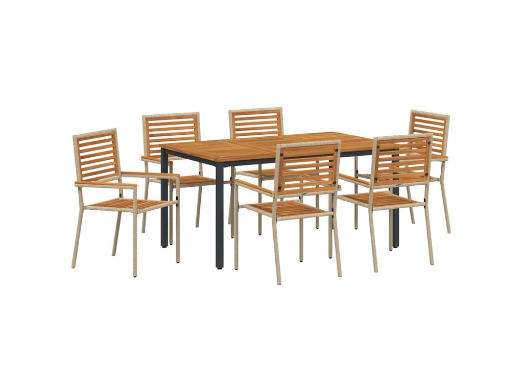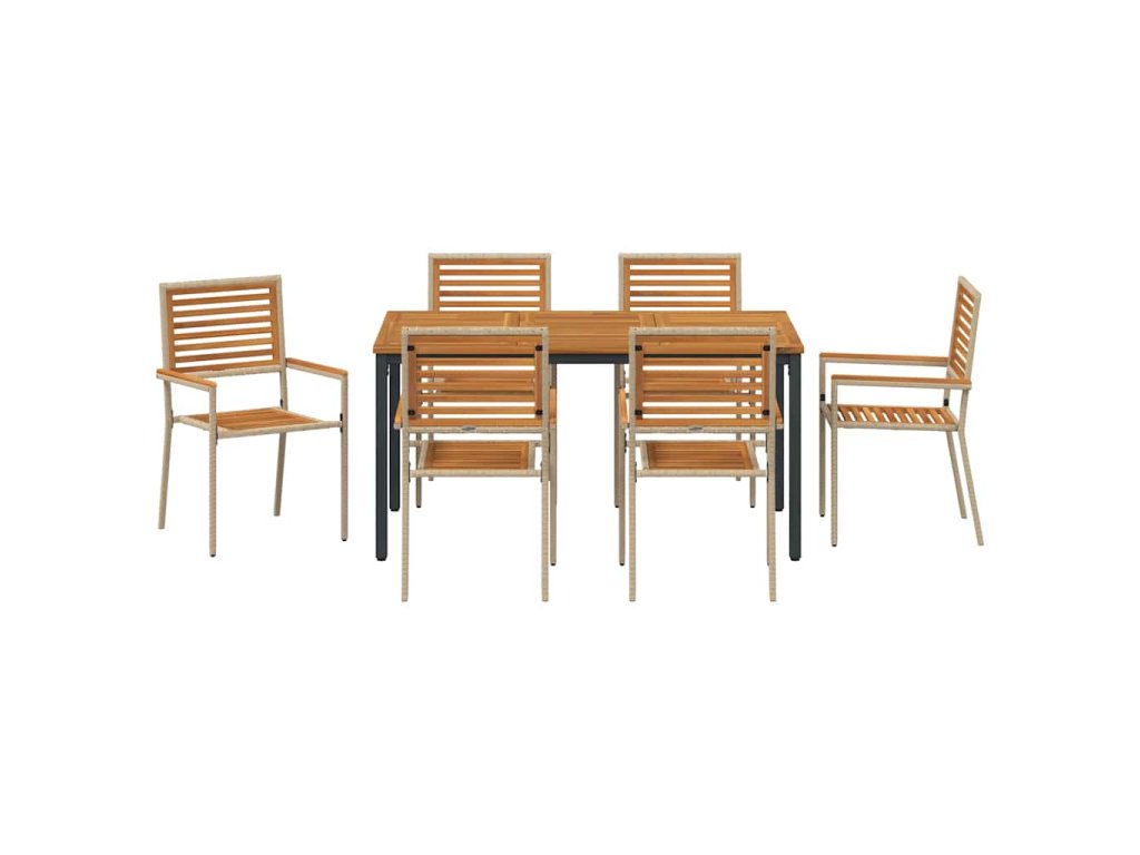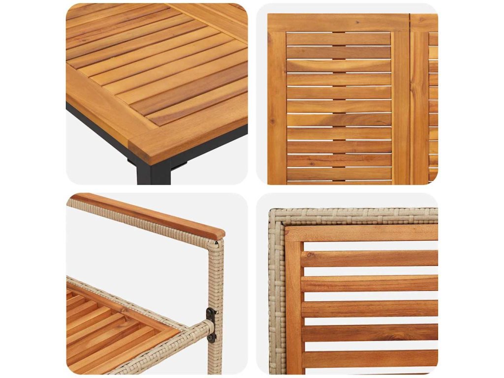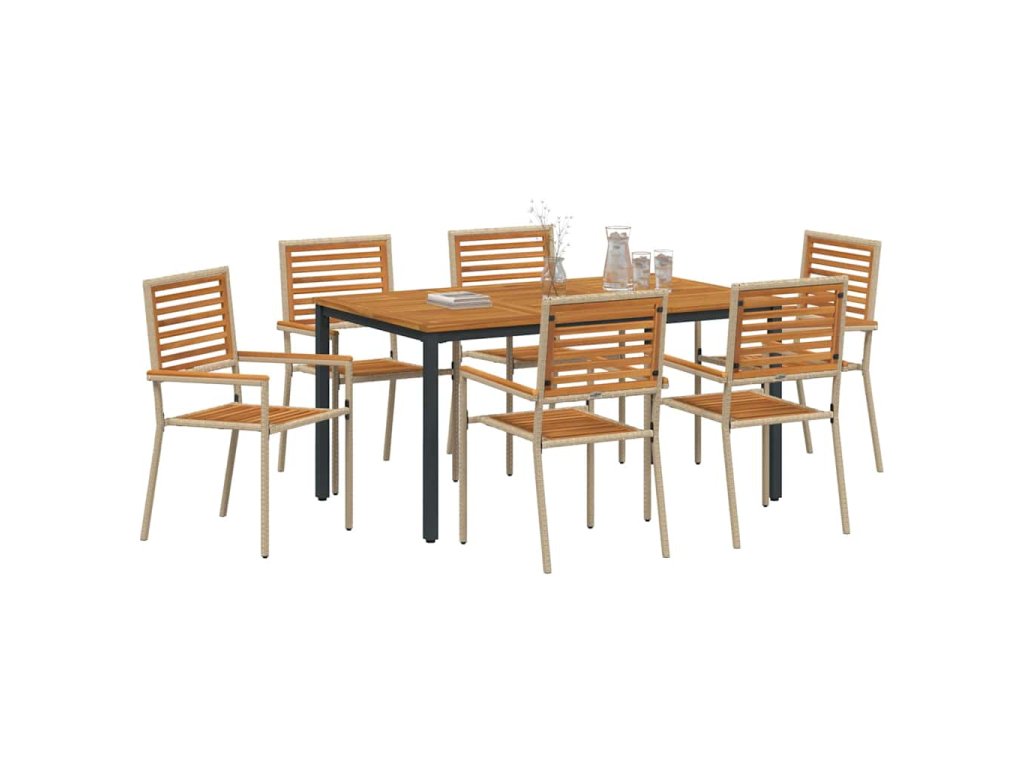 Tenhle zahradní jídelní set, nazvaný Moderní zahradní jídelní set, má elegantní a minimalistický design, což z něj dělá parádní doplněk do každé venkovní jídelny. Je zkonstruovaný speciálně pro zahrady a terasy, spojuje funkčnost se stylem. Kombinace poly ratanu a masivního akáciového dřeva dává setu moderní vibe díky čistým liniím a jednoduchému vzhledu. Perfektní pro jídlo venku, vytváří sofistikovanou atmosféru, kde si můžeš vychutnat jídlo obklopený přírodou.