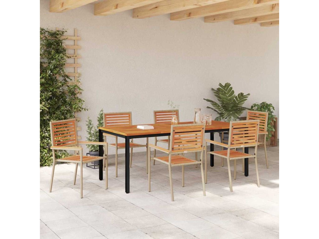 Tenhle zahradní jídelní set, nazvaný Moderní zahradní jídelní set, má elegantní a minimalistický design, což z něj dělá parádní doplněk do každé venkovní jídelny. Je zkonstruovaný speciálně pro zahrady a terasy, spojuje funkčnost se stylem. Kombinace poly ratanu a masivního akáciového dřeva dává setu moderní vibe díky čistým liniím a jednoduchému vzhledu. Perfektní pro jídlo venku, vytváří sofistikovanou atmosféru, kde si můžeš vychutnat jídlo obklopený přírodou.