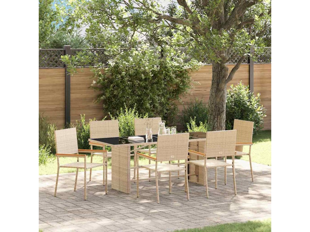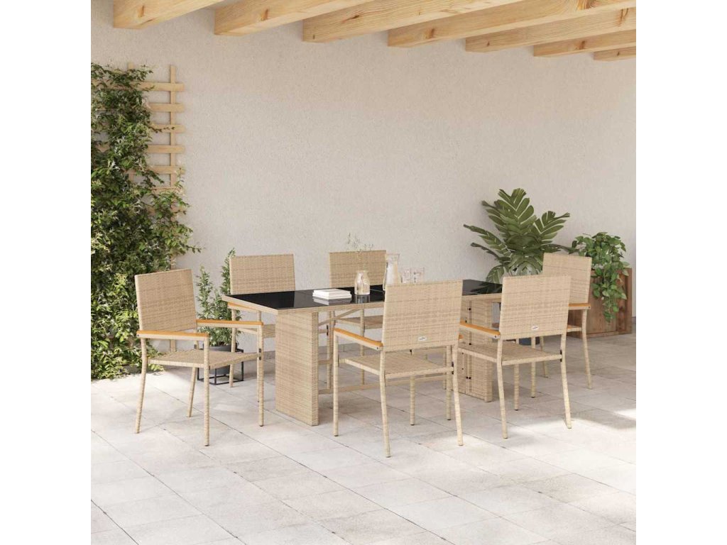 Elegance z Poly Ratanu Tenhle set je vyrobený z poly ratanu, což je chytré pro tvůj venkovní prostor. Je odolný vůči počasí, takže set vypadá pěkně po celý rok. Navíc jeho stylové tkaní dodá moderní nádech, který se v každé zahradě skvěle vyjímá. Skleněná Povrchová Úprava Tvrzené sklo nahoře dává noblesní dotek a je praktické. Snadno se čistí a dlouho si uchovává jasnost. Tenhle odolný materiál odolává škrábancům a snese teplo, takže je perfektní na všechna venkovní jídla. Pevný Ocelový Rám Robustní ocelový rám je základní částí stability tohoto setu. Je postavený na sílu a stabilitu, což podporuje hmotnost stolu a židlí a brání převrhnutí. Tenhle solidní design zaručuje, že si ty a tvoji kamarádi užijete každou chvíli pohodlně a bezpečně. Praktické Využití S obdélníkovým tvarem je tenhle set ideální na venkovní stolování. Skvěle se hodí na terasy a lodžie. Plochá opěrka rukou dodává pohodlí, zatímco minimalistický design ladí s moderním vkusem. Snadná Údržba Aby set vypadal dobře, je nejlepší ho zakrýt, když se nepoužívá. Rychlé otření udrží věci v pořádku, zatímco skleněný povrch usnadňuje údržbu, takže tvé venkovní akce mohou zůstat bezchybné.- Barva: Béžová