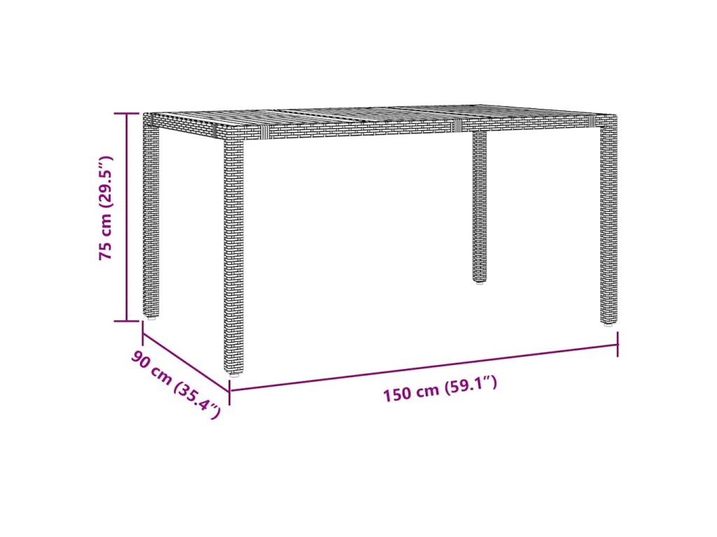 - 1 x Zahradní stůl: 150 x 90 x 75 cm (D x Š x V)
