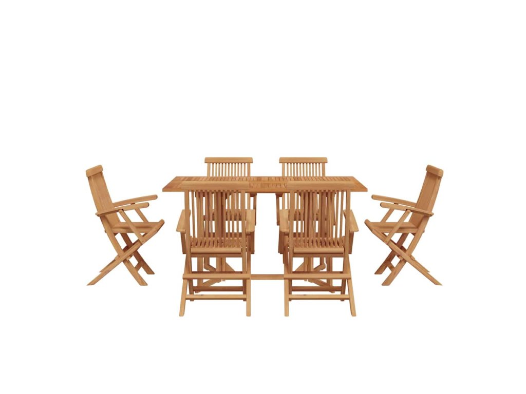 - Masivní Teakové Dřevo: Tuhle jídelní soupravu jsme udělali z masivního teakového dřeva, které je super odolné a skvěle snáší venkovní podmínky. Jeho hustá struktura znamená, že přirozeně odolává vlhkosti, takže vypadá skvěle dlouhá léta. Hluboký odstín teaku dodává teplo a elegance tu skvěle spojuje formu s funkčností.