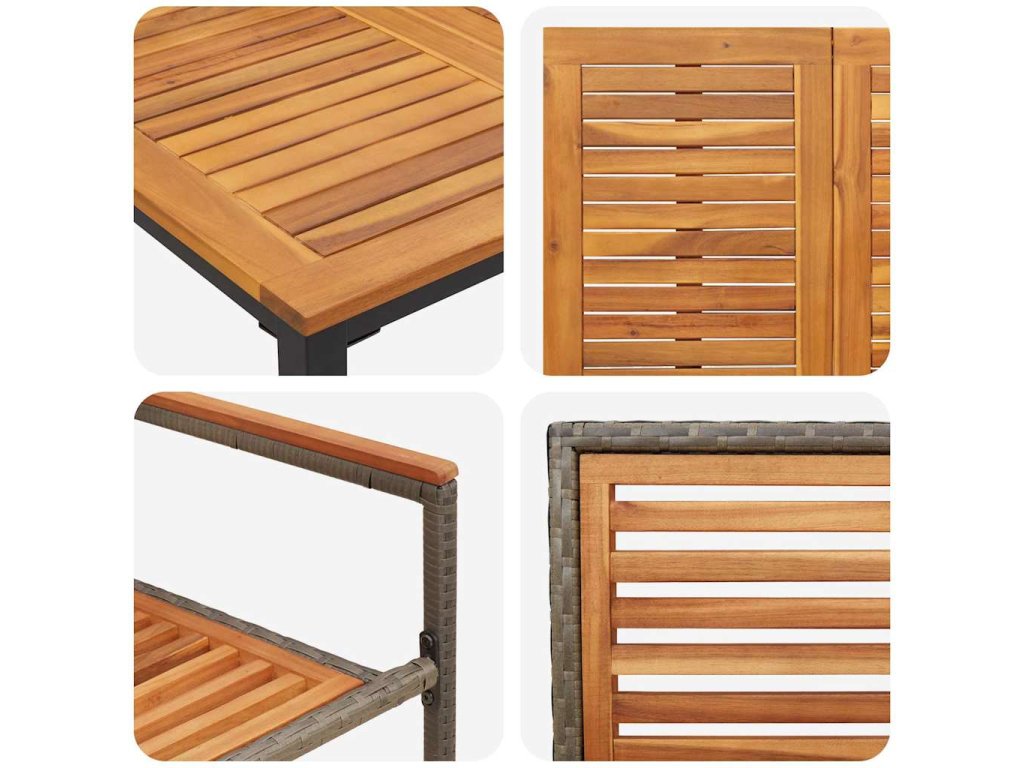 - Poly ratanová struktura Příjemná na pohled a pohodlná na sezení, poly ratan zajišťuje odolnost, takže si zachovává skvělý vzhled i po častém používání venku.