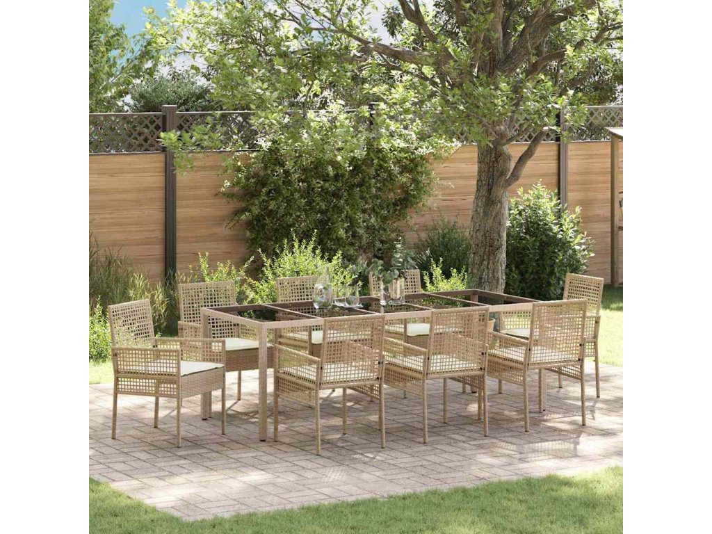 Tato sada zahradního nábytku slouží jako skvělý prvek pro jakýkoli venkovní prostor. Skvěle spojuje styl a funkčnost. S elegantním designem se hodí k různým aktivitám, od neformálních srazů po výjimečné večeře. Je ideální pro moderní zahrady a terasy, kde nabízí spoustu místa k sezení a příjemnou atmosféru. Kombinace poly ratanu a tvrzeného skla vypadá prostě úžasně, a pohodlné polštáře zajišťují relaxaci a pohodlí při jídle.