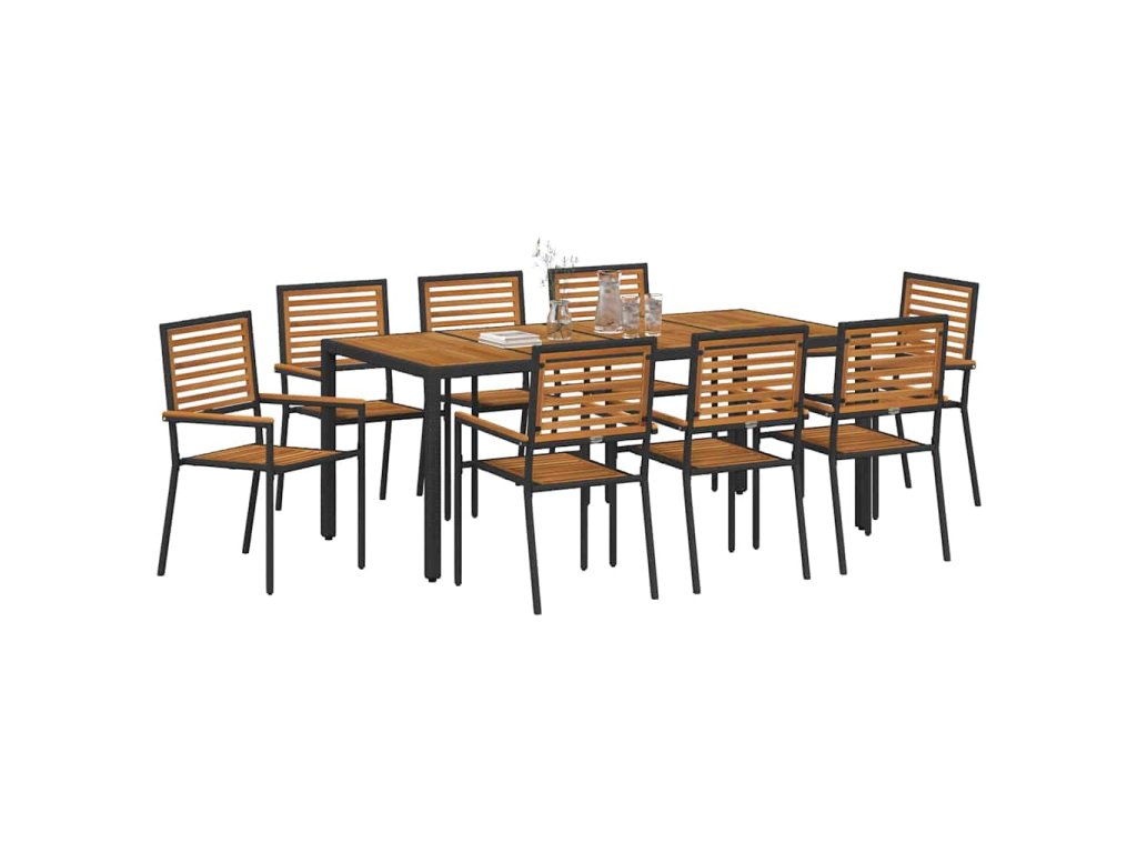 - Součásti setu: Všechny prvky jsou navrženy tak, aby zlepšily zážitek při jídle. Ploché opěrky z akáciového dřeva a pohodlné sedáky z polyratanu zaručují maximální komfort. Detaily jsou pečlivě provedené a nohy mají design, který poskytuje skvělou stabilitu.