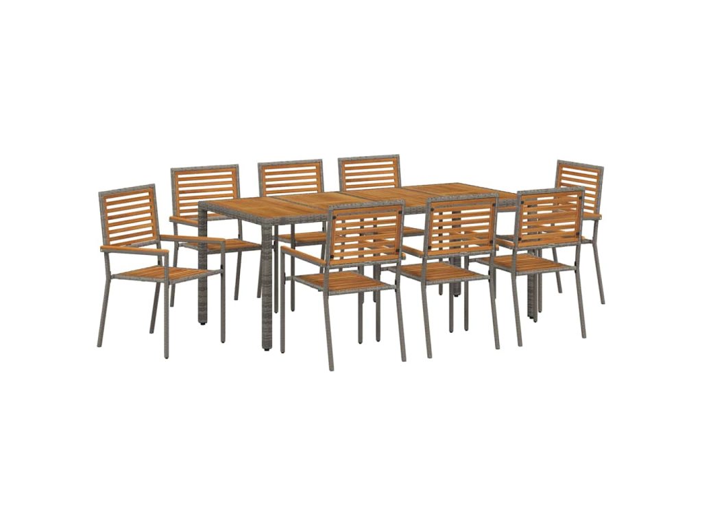 Zahradní jídelní souprava 9 pcs Šedá a hnědá polyratan 3365445