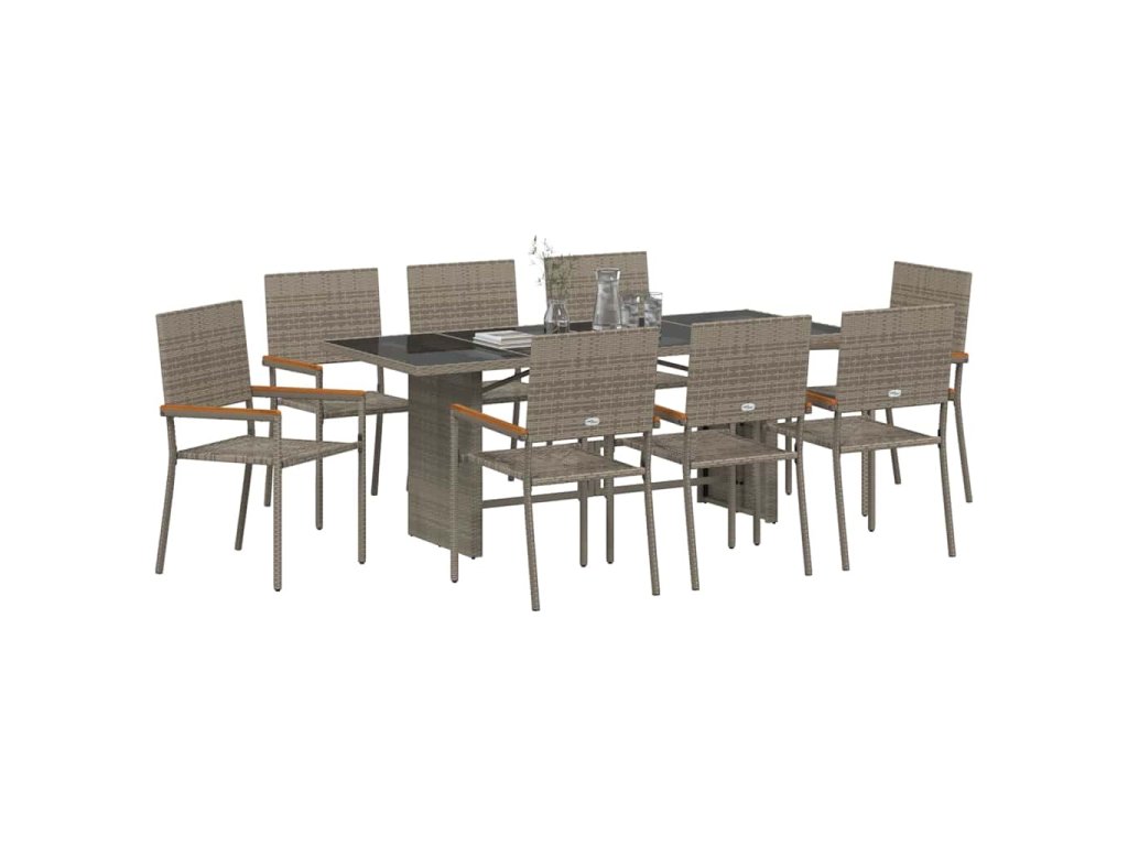 Zahradní jídelní souprava 9 pcs Šedá polyratan 3365428