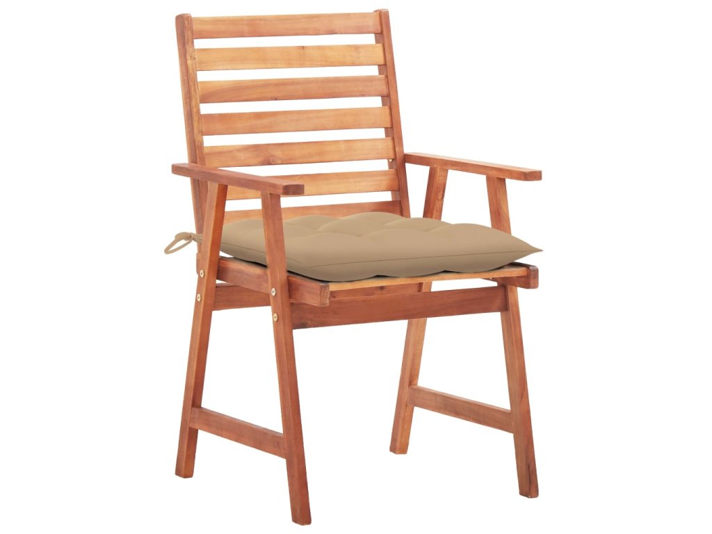 Tato moderní sada dřevěných jídelních židlí s poduškami dodá vaší zahradě, terase či dvorku nádech přírodního stylu. Představuje skvělou volbu pro stolování na čerstvém vzduchu.