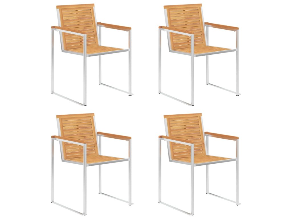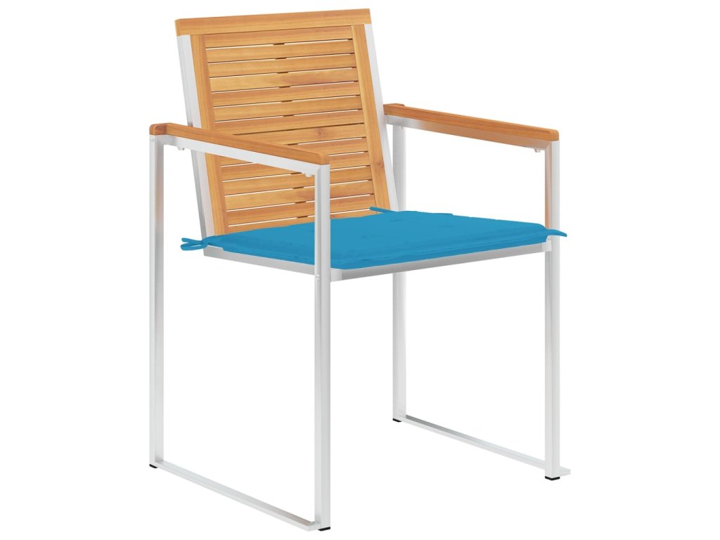 Nábytek je zhotovený z extrémně odolného teakového tvrdého dřeva, které již prošlo procesem smršťování, bylo uměle vysušené a poté jemně a dohladka obroušené. Teakové dřevo je oceňované pro svou výjimečnou pevnost a klimatickou odolnost, a proto je jedním z nejoblíbenějších materiálů pro výrobu zahradního nábytku. Je to skvělá volba, pokud si chcete pořídit venkovní výbavu, která vám vydrží sloužit dlouhá léta. Vzhledem k rámu z vysoce kvalitní nerezové oceli jsou židle zároveň robustní a odolné vůči korozi. Přiložená poduška slouží nejen jako praktický doplněk – plní také dekorativní funkci. Posaďte se a dopřejte si venku skvělou večeři nebo si jen tak odpočiňte a užívejte si počasí s touto klasickou sadou zahradních židlí.