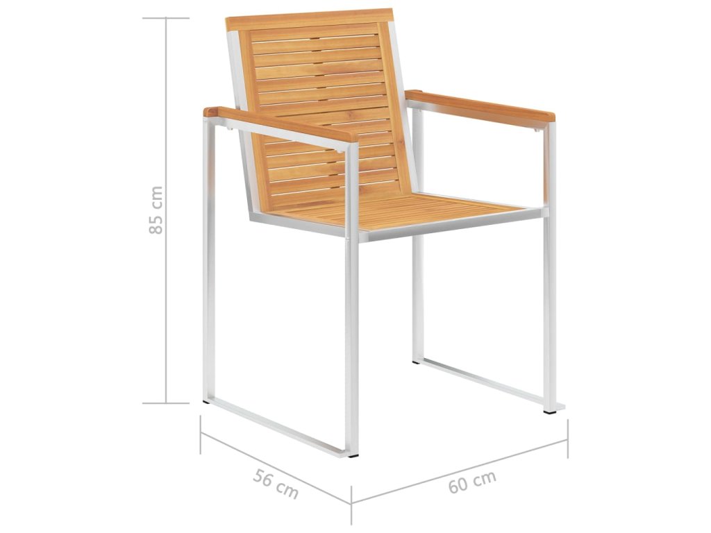 Nábytek je zhotovený z extrémně odolného teakového tvrdého dřeva, které již prošlo procesem smršťování, bylo uměle vysušené a poté jemně a dohladka obroušené. Teakové dřevo je oceňované pro svou výjimečnou pevnost a klimatickou odolnost, a proto je jedním z nejoblíbenějších materiálů pro výrobu zahradního nábytku. Je to skvělá volba, pokud si chcete pořídit venkovní výbavu, která vám vydrží sloužit dlouhá léta. Vzhledem k rámu z vysoce kvalitní nerezové oceli jsou židle zároveň robustní a odolné vůči korozi. Přiložená poduška slouží nejen jako praktický doplněk – plní také dekorativní funkci. Posaďte se a dopřejte si venku skvělou večeři nebo si jen tak odpočiňte a užívejte si počasí s touto klasickou sadou zahradních židlí.
